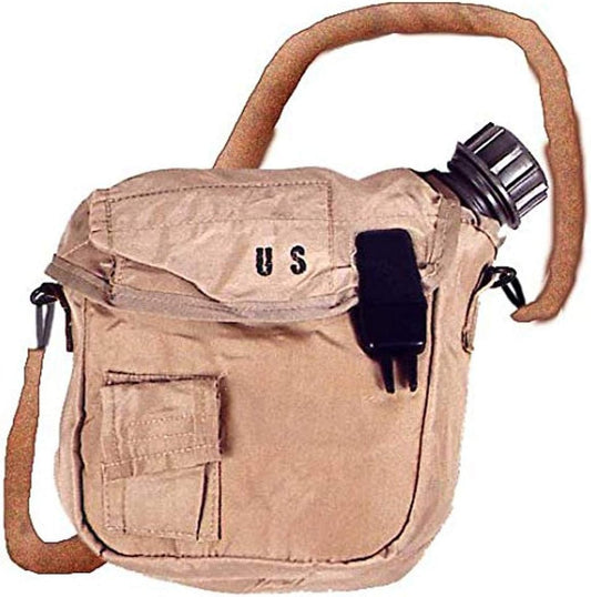 Never Issued 2 Qt OD Canteen with 2 Qt Desert Canteen Cover, Plastic