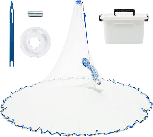 Drasry Saltwater Fishing Cast Net for Bait Trap with Heavy Sinkers Fish Throw Net. Size 3ft/4ft/5ft/6ft/7ft/8ft/9ft/10ft Radius Freshwater Nets