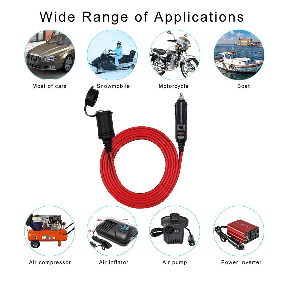 - Added length for various electrical chargers, such as tire pump, air compressor, power inverter, cooler, fridge and other 12V accessories. Widely used in car, RV, truck, boat, travel trailer, pickup.