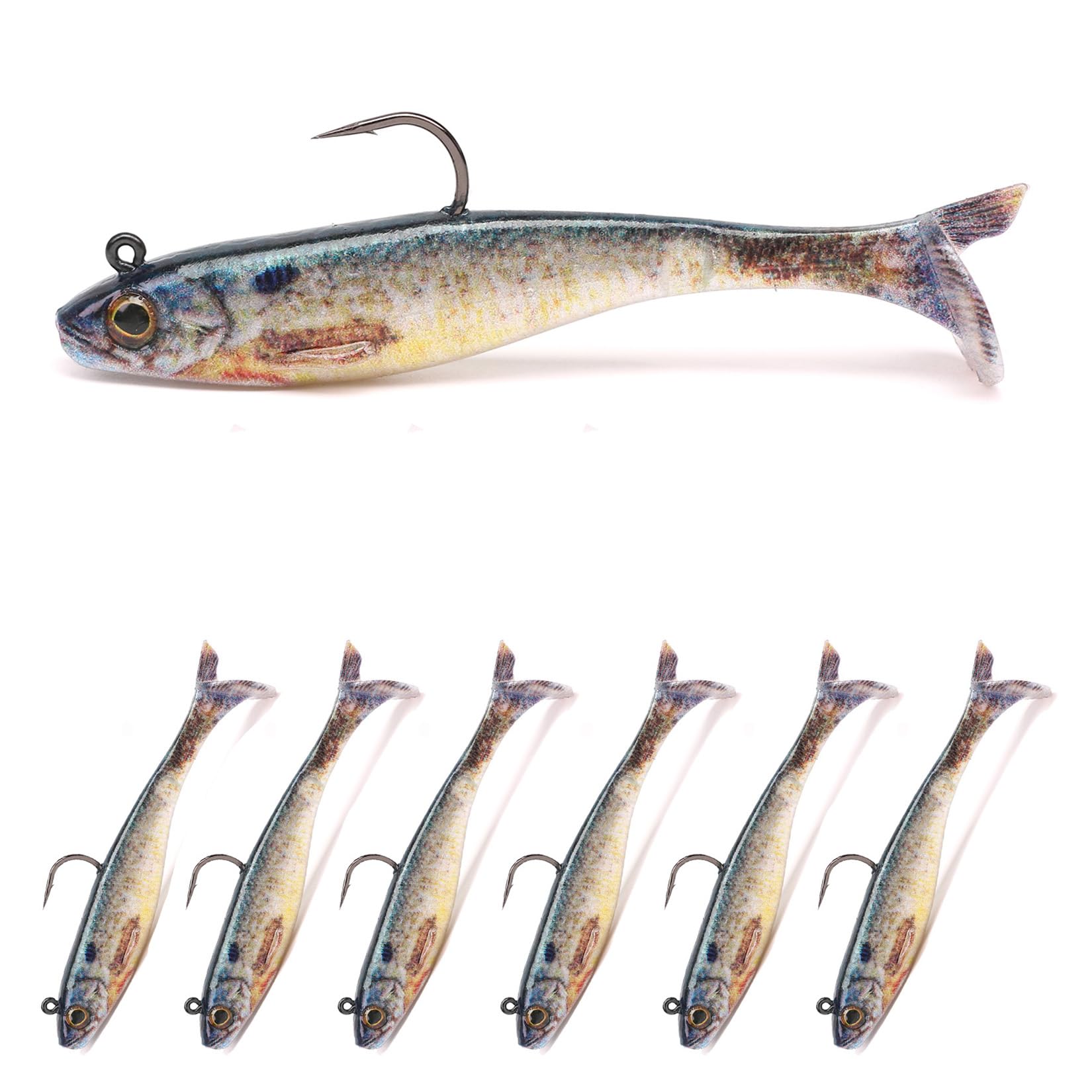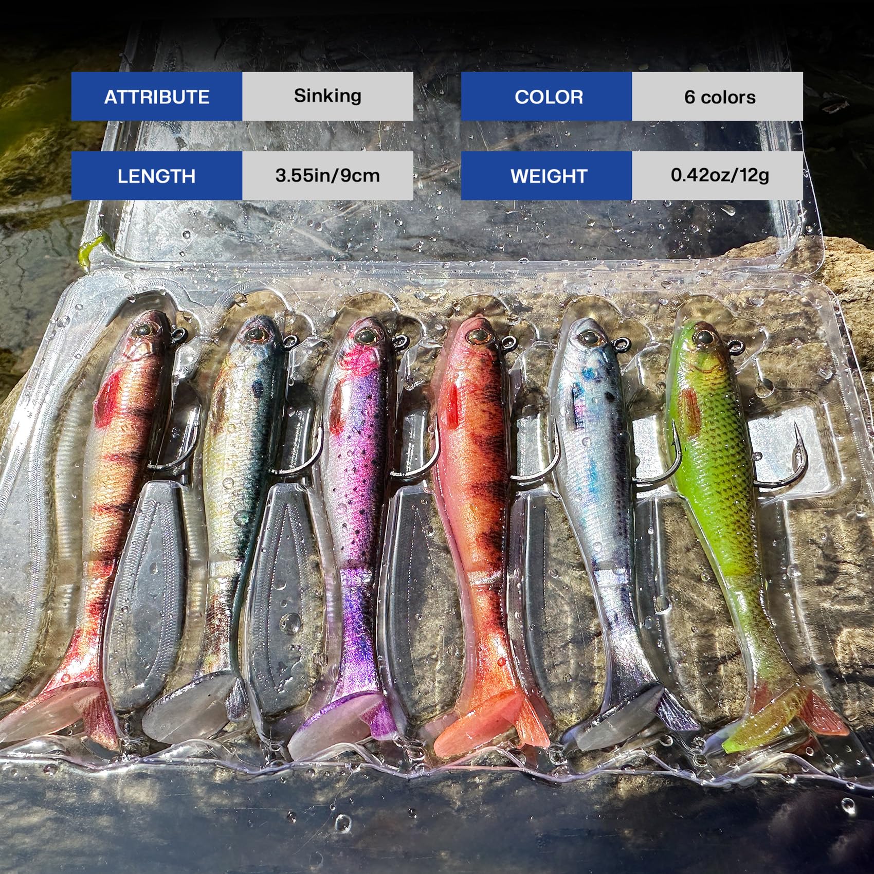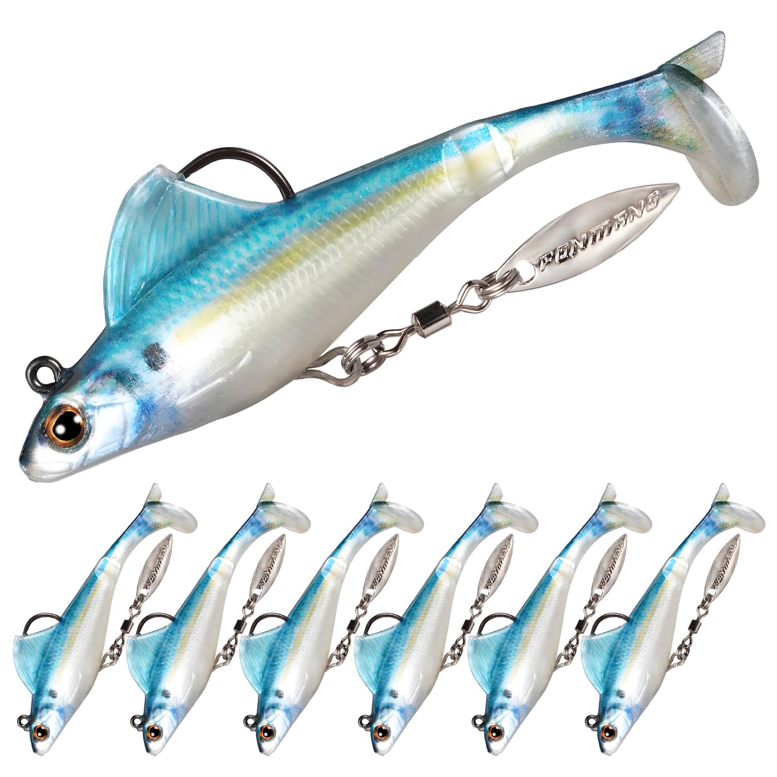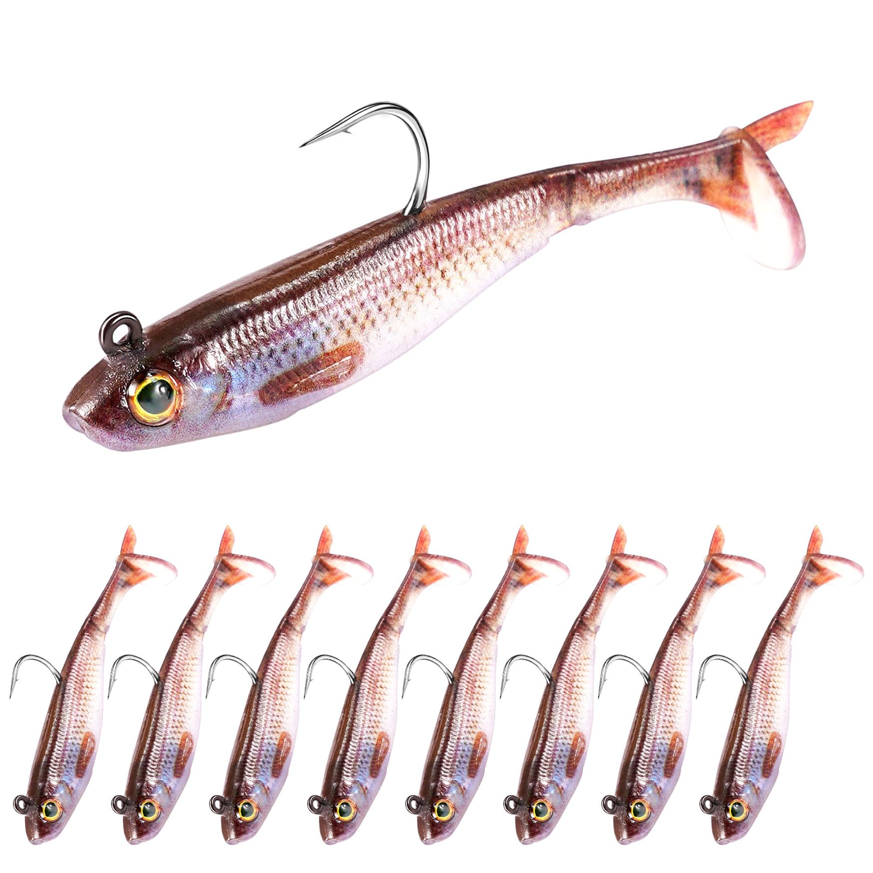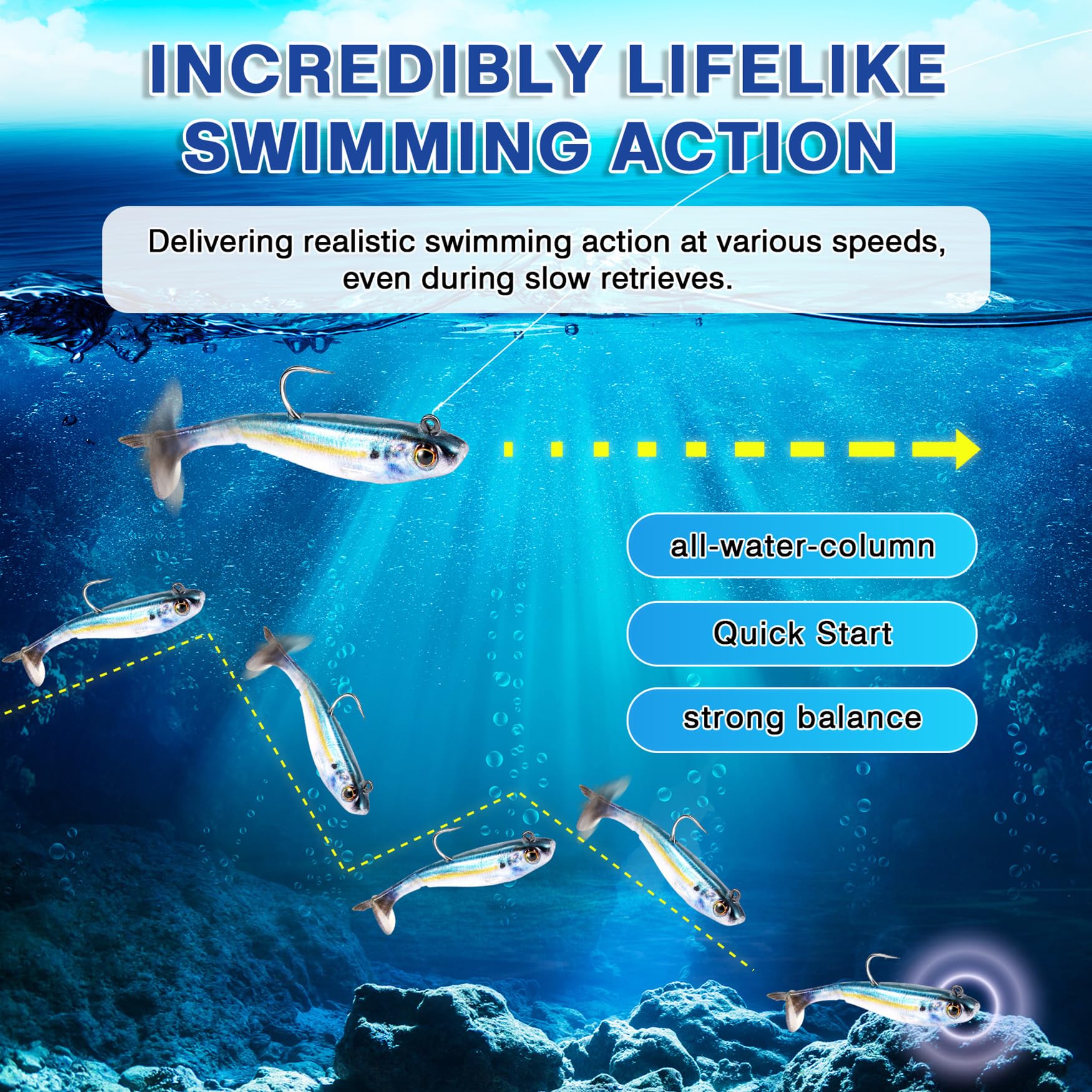 - METICULOUSLY DESIGNED SWIMBAITS - The soft plastic lures features a sharp and durable Mustad 1# jig hook and is equipped with ideal weight and balance. It also features a flat belly so when paused, the tail will stand up, making it more enticing for fish to bite