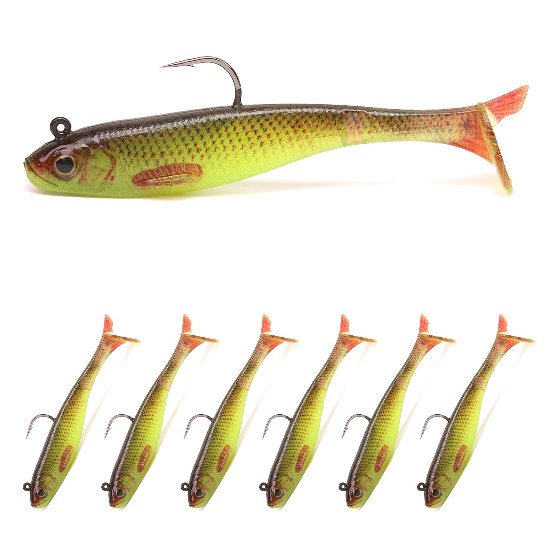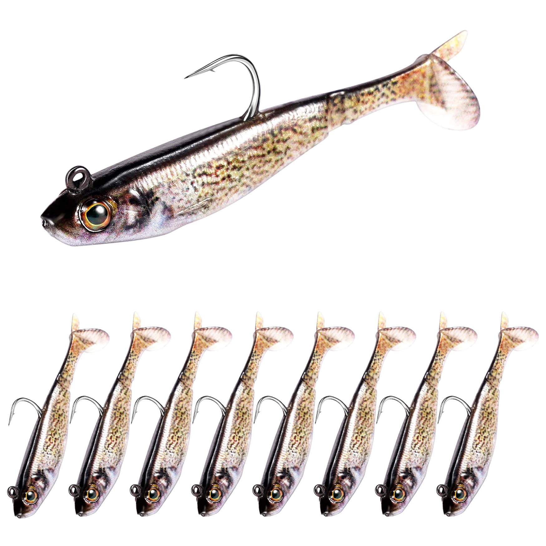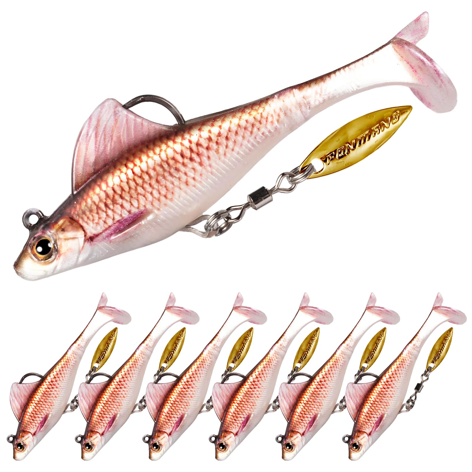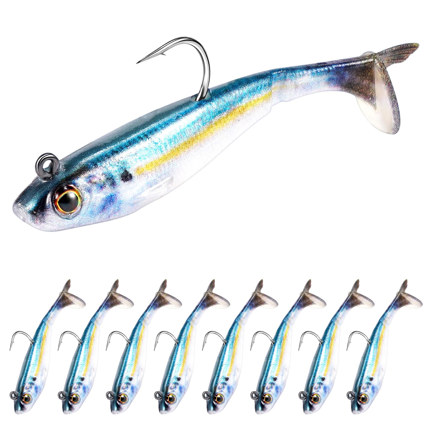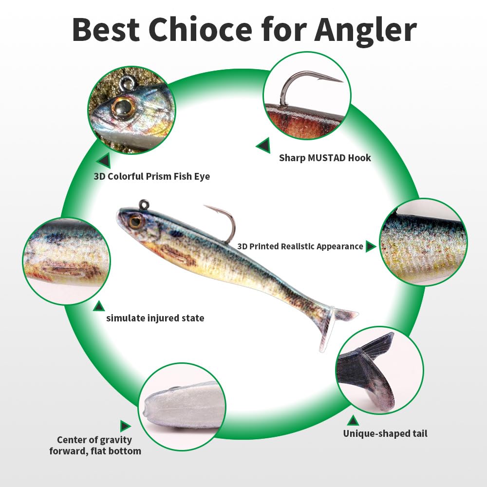 - METICULOUSLY DESIGNED SWIMBAITS - The soft plastic lures features a sharp and durable Mustad 1# jig hook and is equipped with ideal weight and balance. It also features a flat belly so when paused, the tail will stand up, making it more enticing for fish to bite