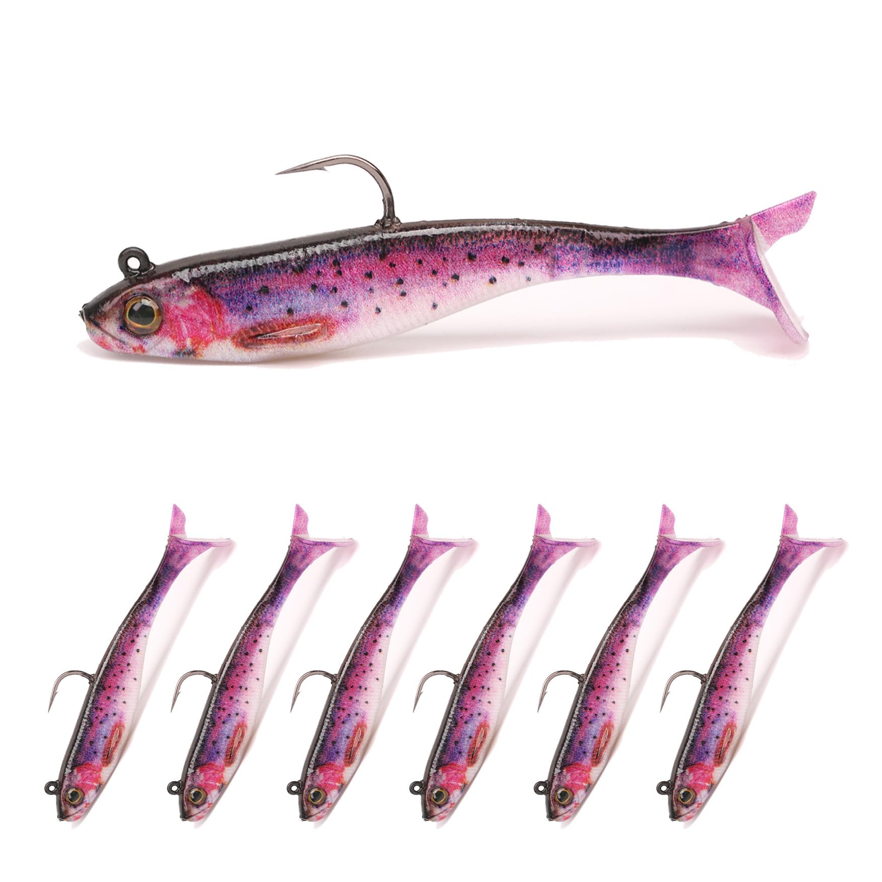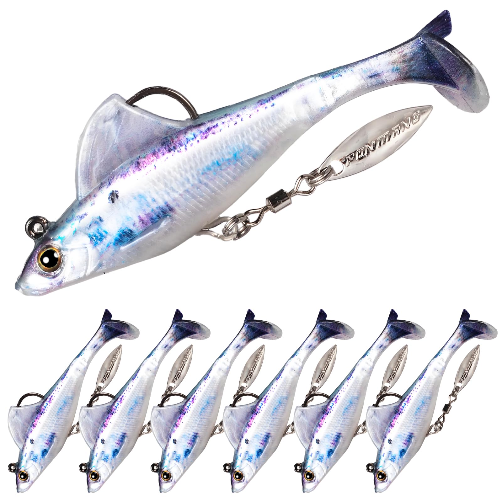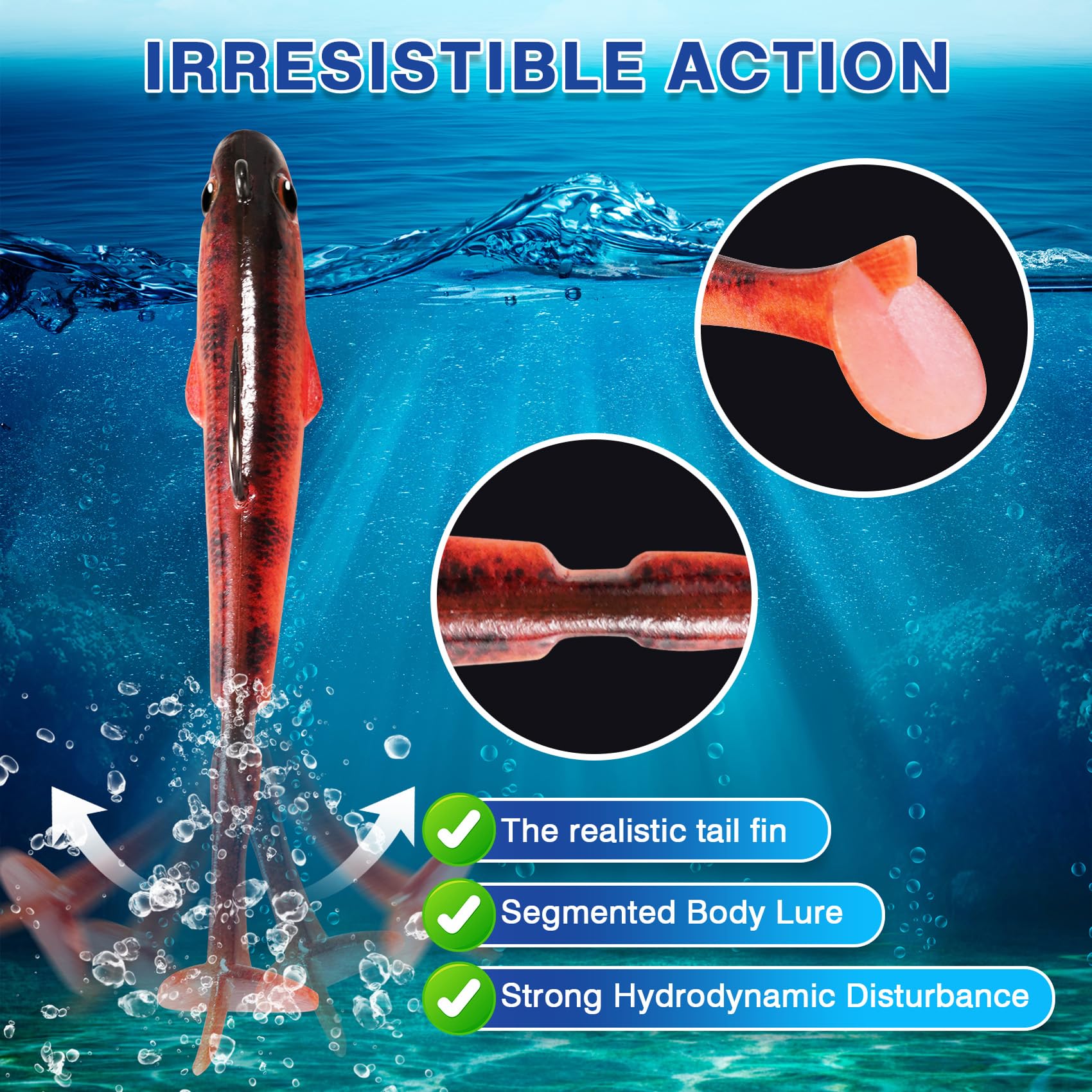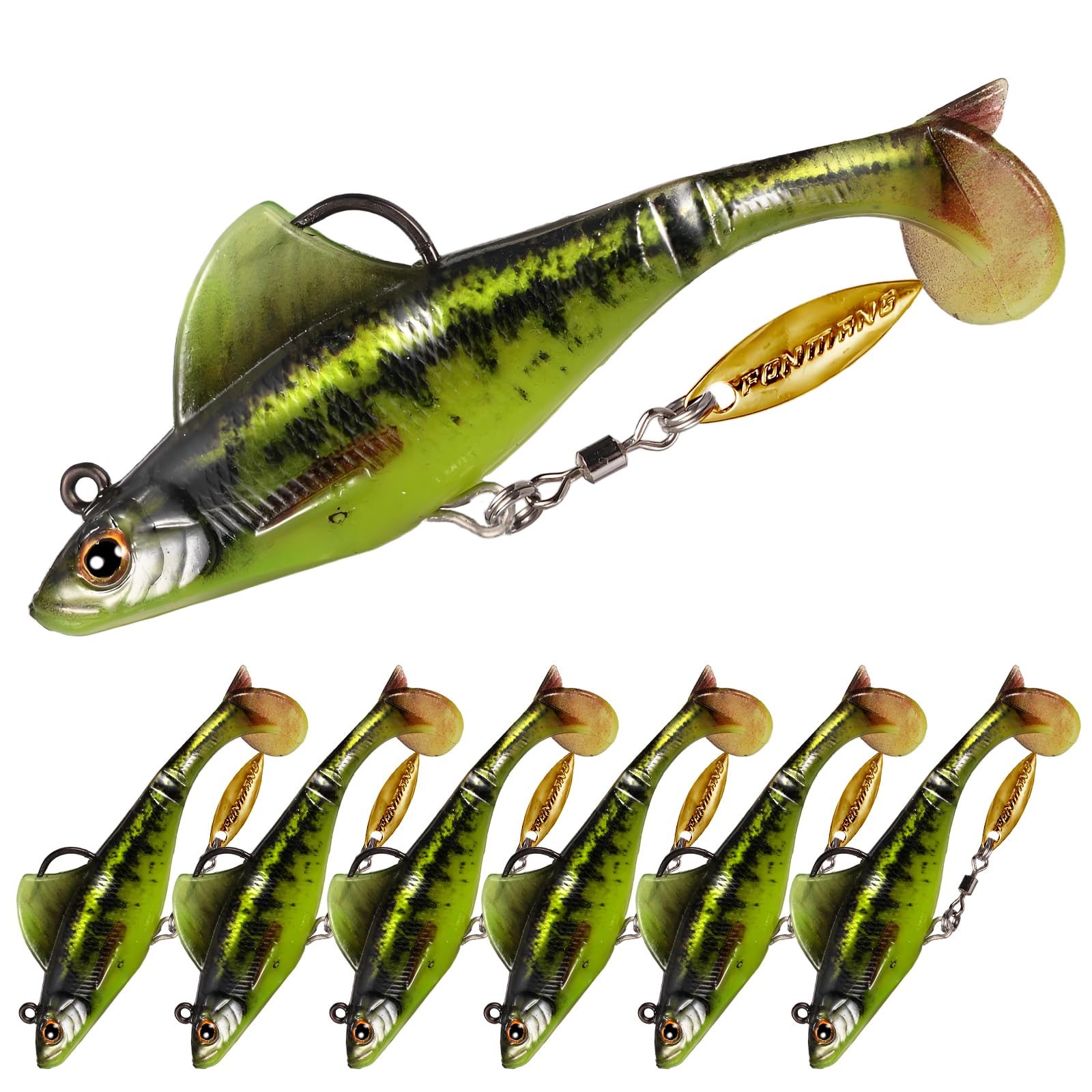 - METICULOUSLY DESIGNED SWIMBAITS - The soft plastic lures features a sharp and durable Mustad 1# jig hook and is equipped with ideal weight and balance. It also features a flat belly so when paused, the tail will stand up, making it more enticing for fish to bite