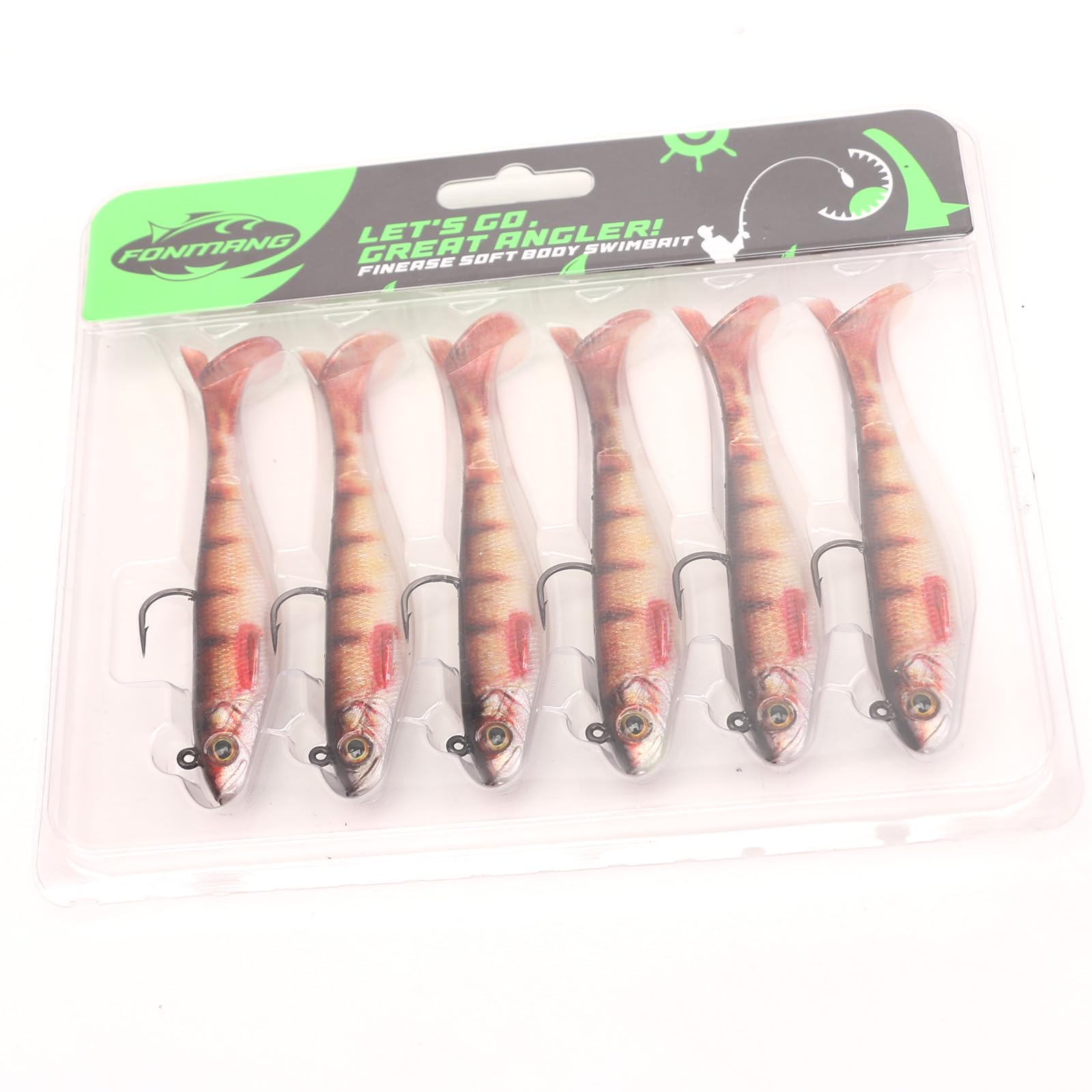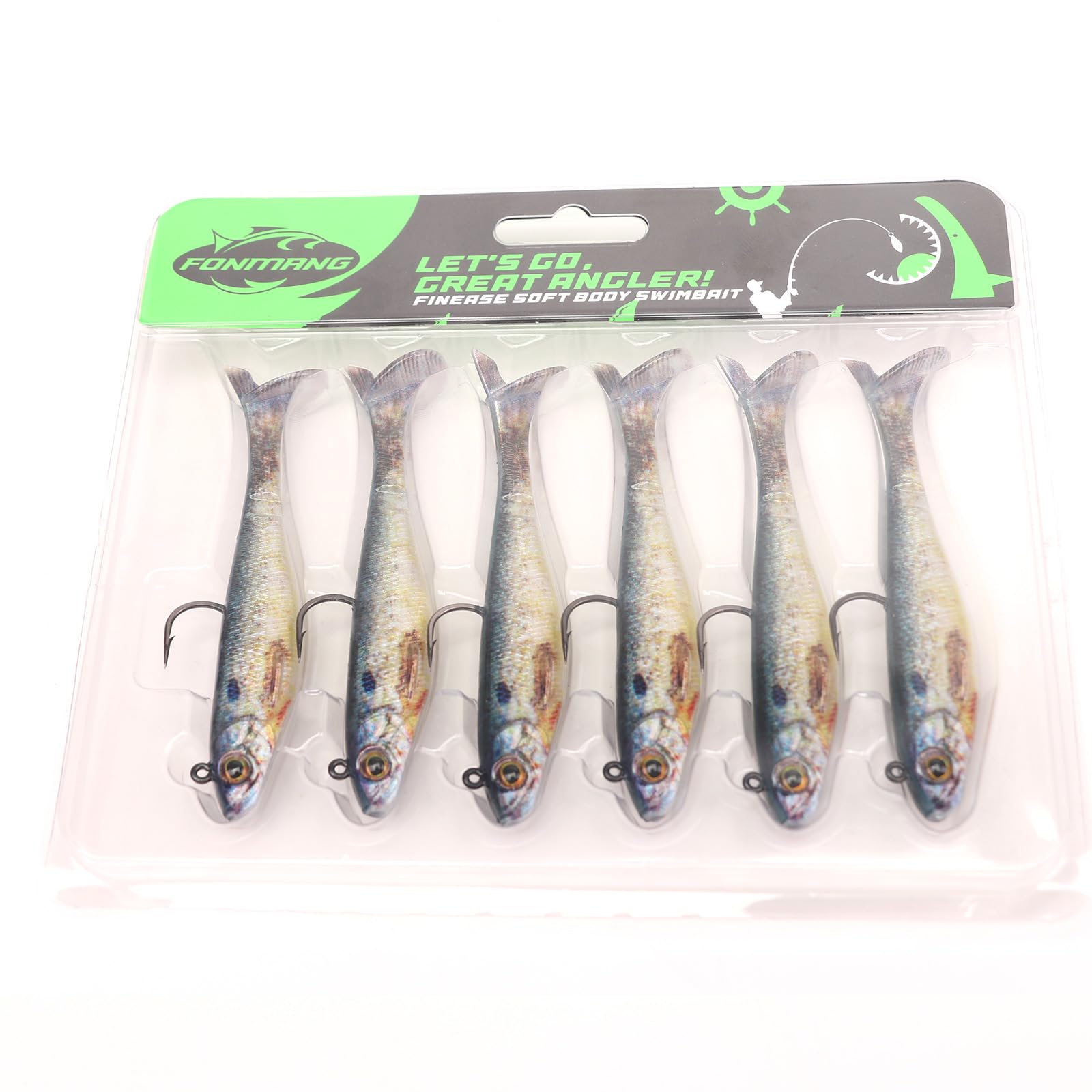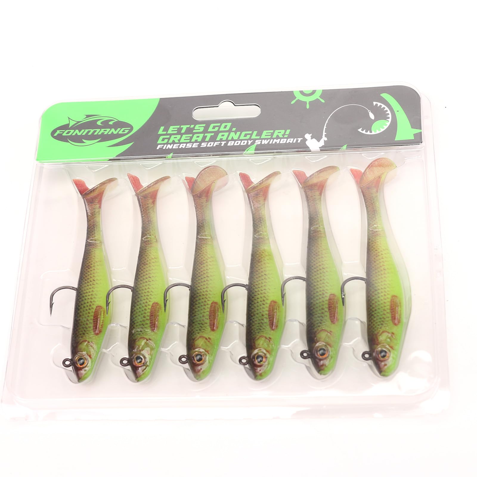 - HIGH-QUALITY LURES - Made from a Germany durable soft plastic, the FONMANG Swim Baits for Bass Fishing Lures is able to withstand the abuse of hard hitting strikes from aggressive predators and intense fish battles without ever sacrificing its seductive swimming action