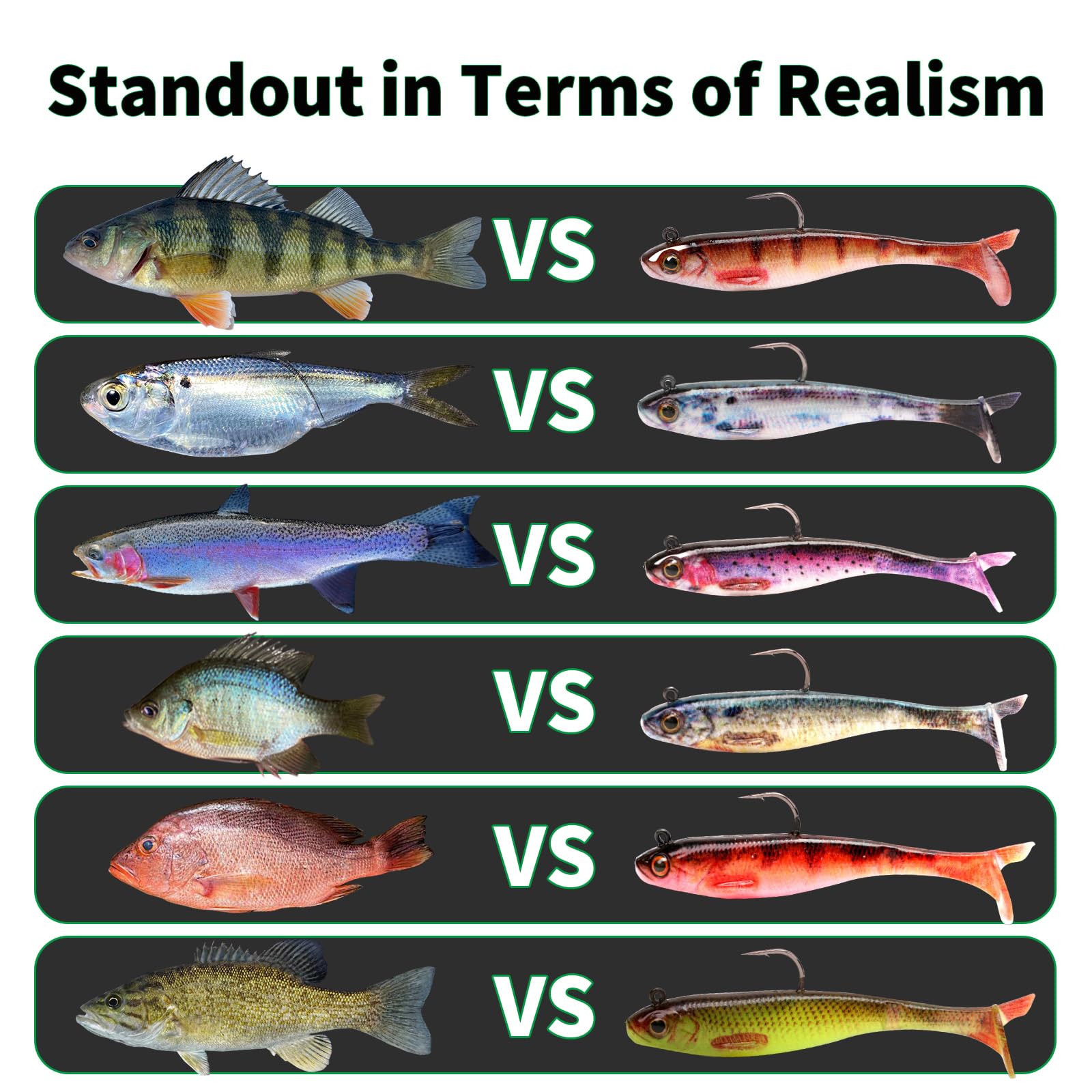 - REALISTIC APPEARANCE - Taking realism to another dimension, the FONMANG Swimbait comes in 8 different colors, all mimicking the appearance of bait fish found in both freshwater and saltwater in the United States. It features 3D fins, 3D gills, 3D eyes, and a photoprint finish that delivers an unparalleled lifelike presentation