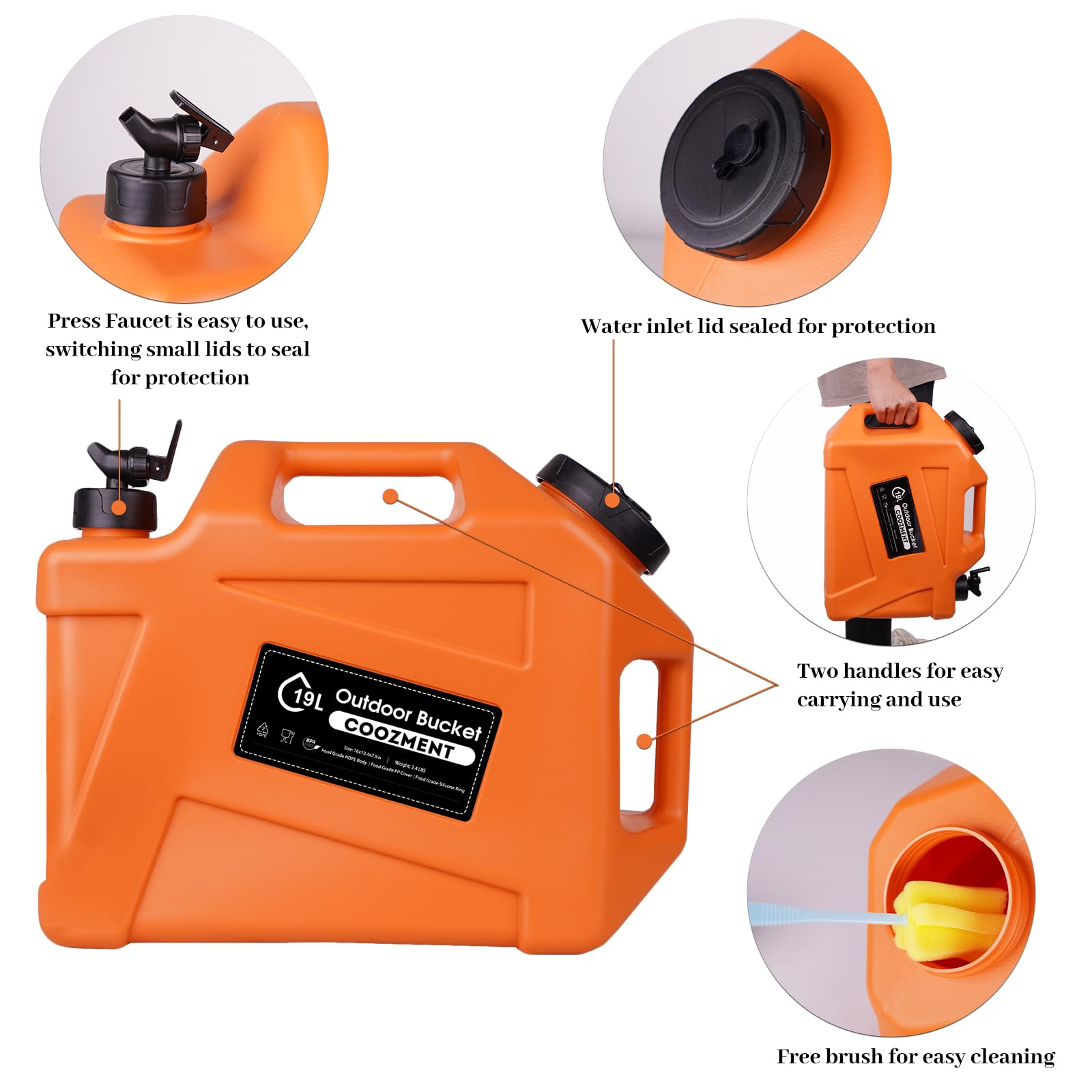 - Package Includes: 1*water container, 1*sealing cap, 1*water tap, 1*cleaning brush