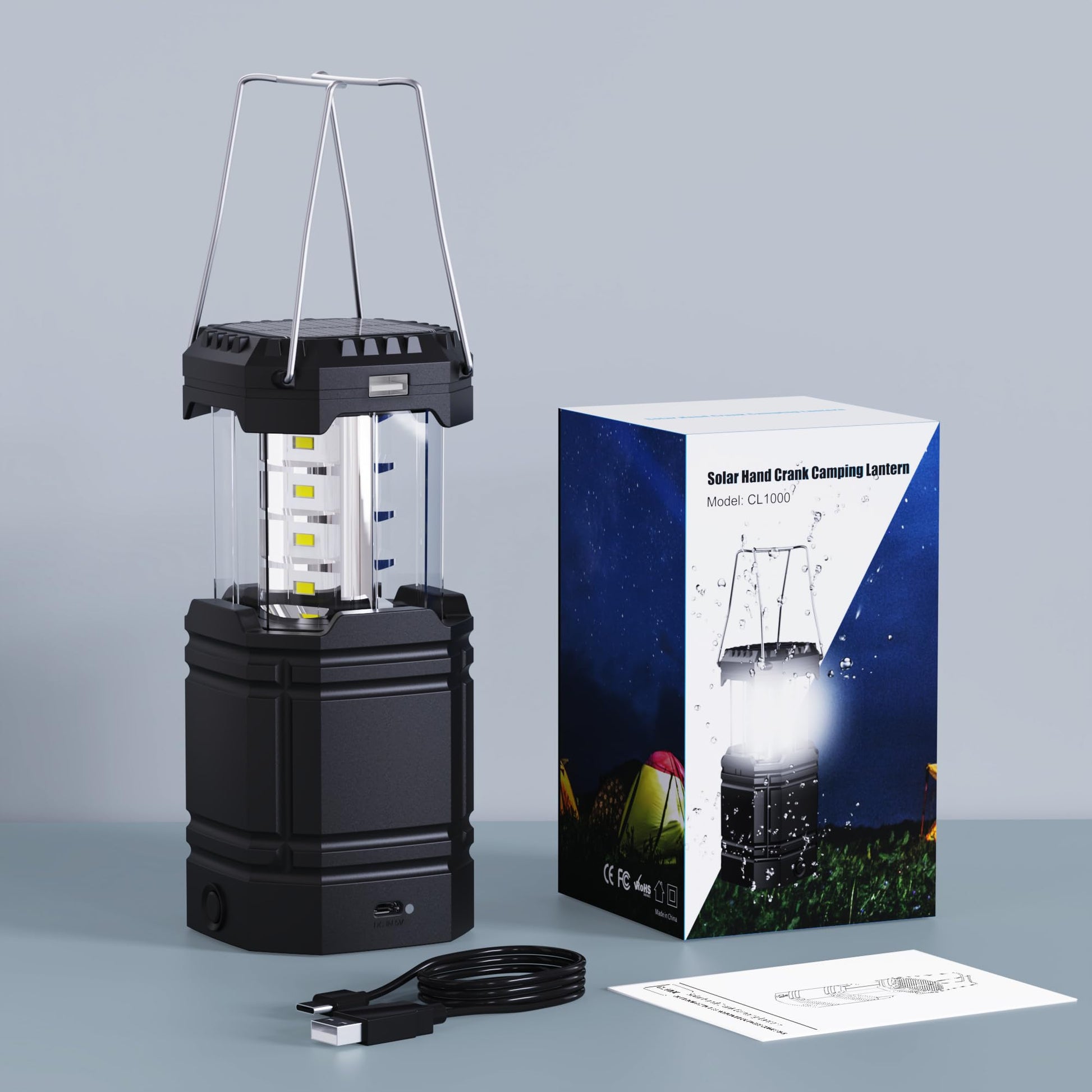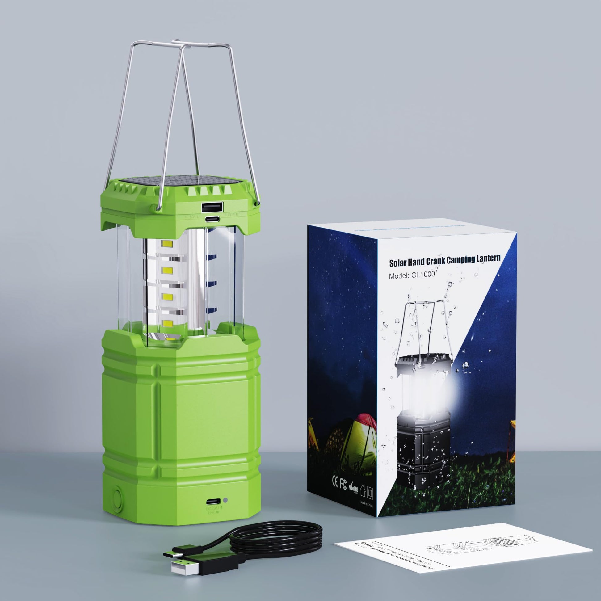 3000 Large Capacity Hand Crank Solar Camping Lantern, Portable Ultra Bright LED Torch, 23-26 Hours Running Time, USB Charger, Electronic Lantern for Outdoor