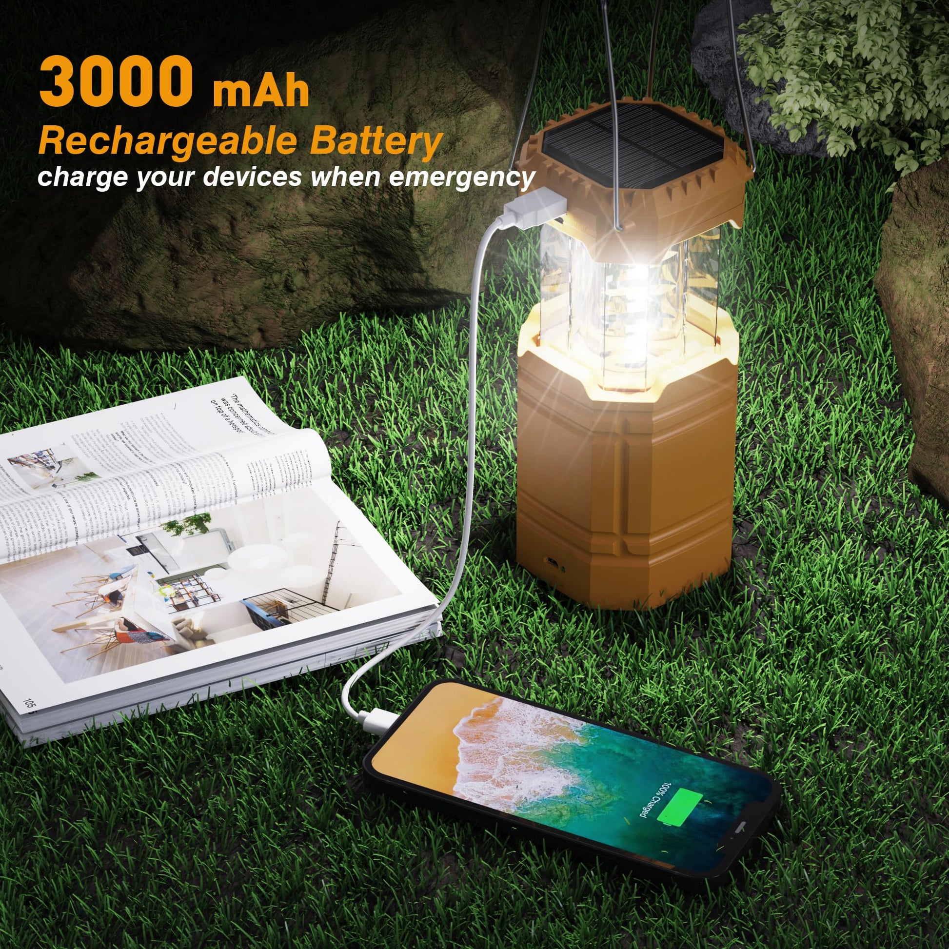- 【3000 Large Capacity Built-in Battery 𝘄𝗶𝘁𝗵 𝗨𝗦𝗕 𝗖𝗵𝗮𝗿𝗴𝗲𝗿】 This 𝗰𝗮𝗺𝗽𝗶𝗻𝗴 𝗹𝗮𝗻𝘁𝗲𝗿𝗻 has a large capacity built-in battery to boost a dead phone, keeping you safe and in touch. The USB Port allows you to charge your android mobile phone or other android USB devices in emergency situations.