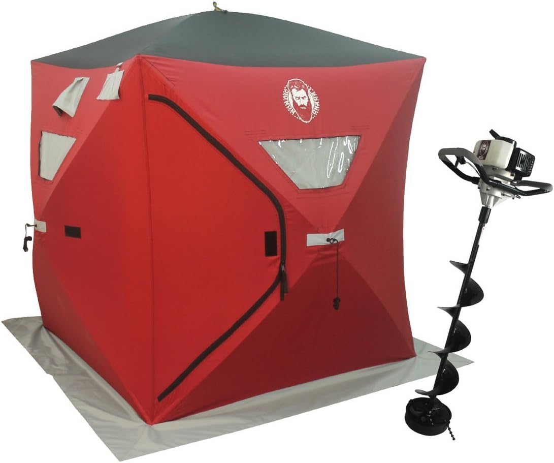 33cc Power Ice Auger and Portable Two Man Shelter Combo