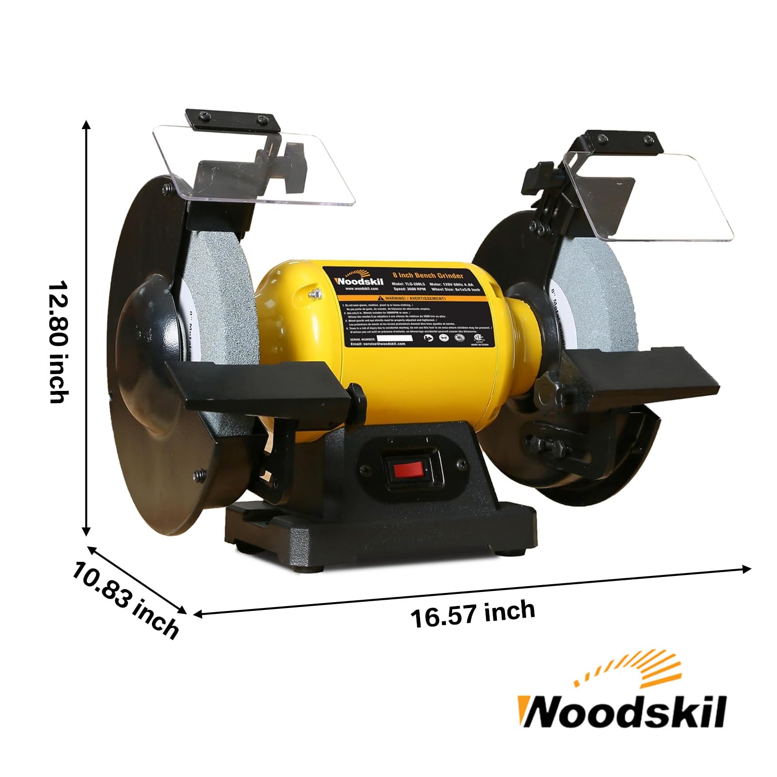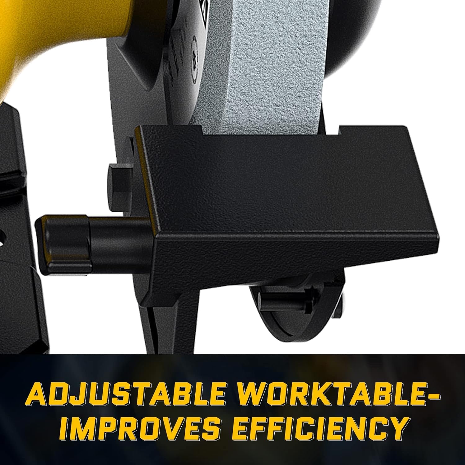 - EFFICIENT AND STABLE WORK: Bench grinder adopts heat dissipation system to extend the service life. Benchtop grinder is made of cast iron base with shockproof rubber feet and mounting holes to prevent shaking and walking, and the worktable with adjustable angle makes grinder more efficient. It can slow down the vibration more than the ordinary benchtop grinder.
