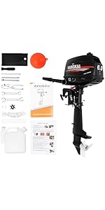 - 【4 Stroke 6.5 HP Outboard Motor】4 stroke outboard motor provides all the power you need to drive a small boat. Water cooling technology improves the reliability of the whole outboard motor. Lightweight, easy to carry, and large fuel tank capacity.
