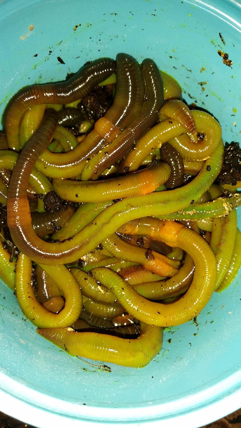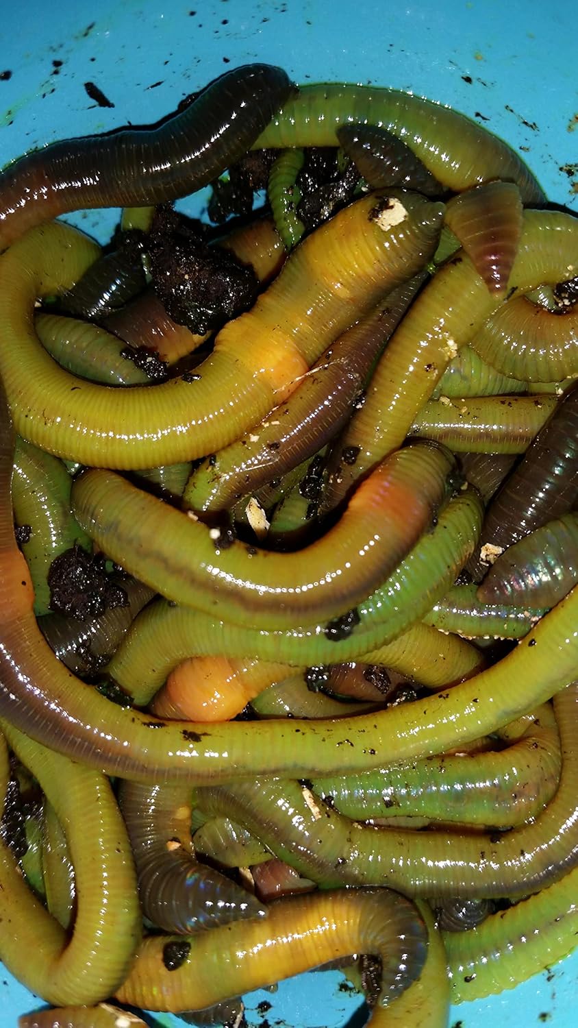 50 Green Canadian Nightcrawlers (4-6 inch) Worm-Glo Treated Fishing Bait