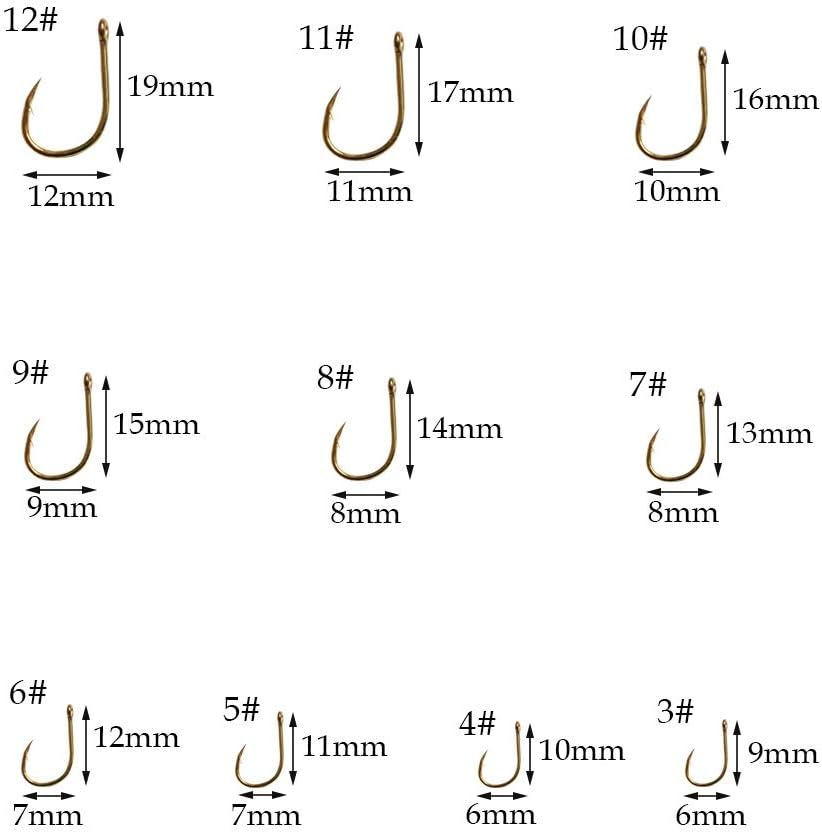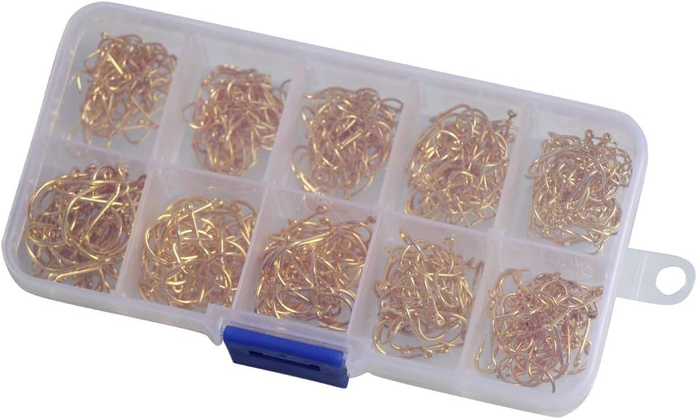 500pcs Small Fishing Hooks Black High Carbon Fishing Hooks Set 10 Sizes with a Plastic Box (500pcs Gold)