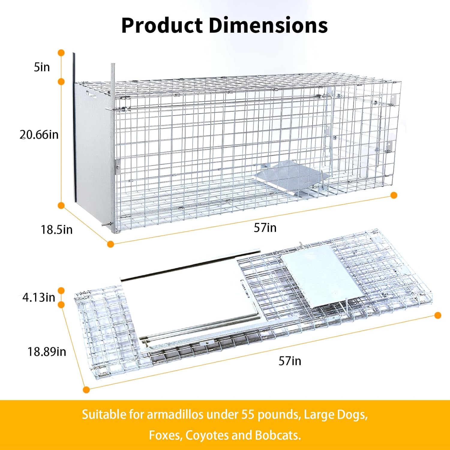 57" Large Humane Live Animal Trap,Collapsible Large Animal Catcher Cage,Cage Traps for Large Dogs up to 55 pounds,Foxes,Coyotes,Bobcat,Similar Sized Animals
