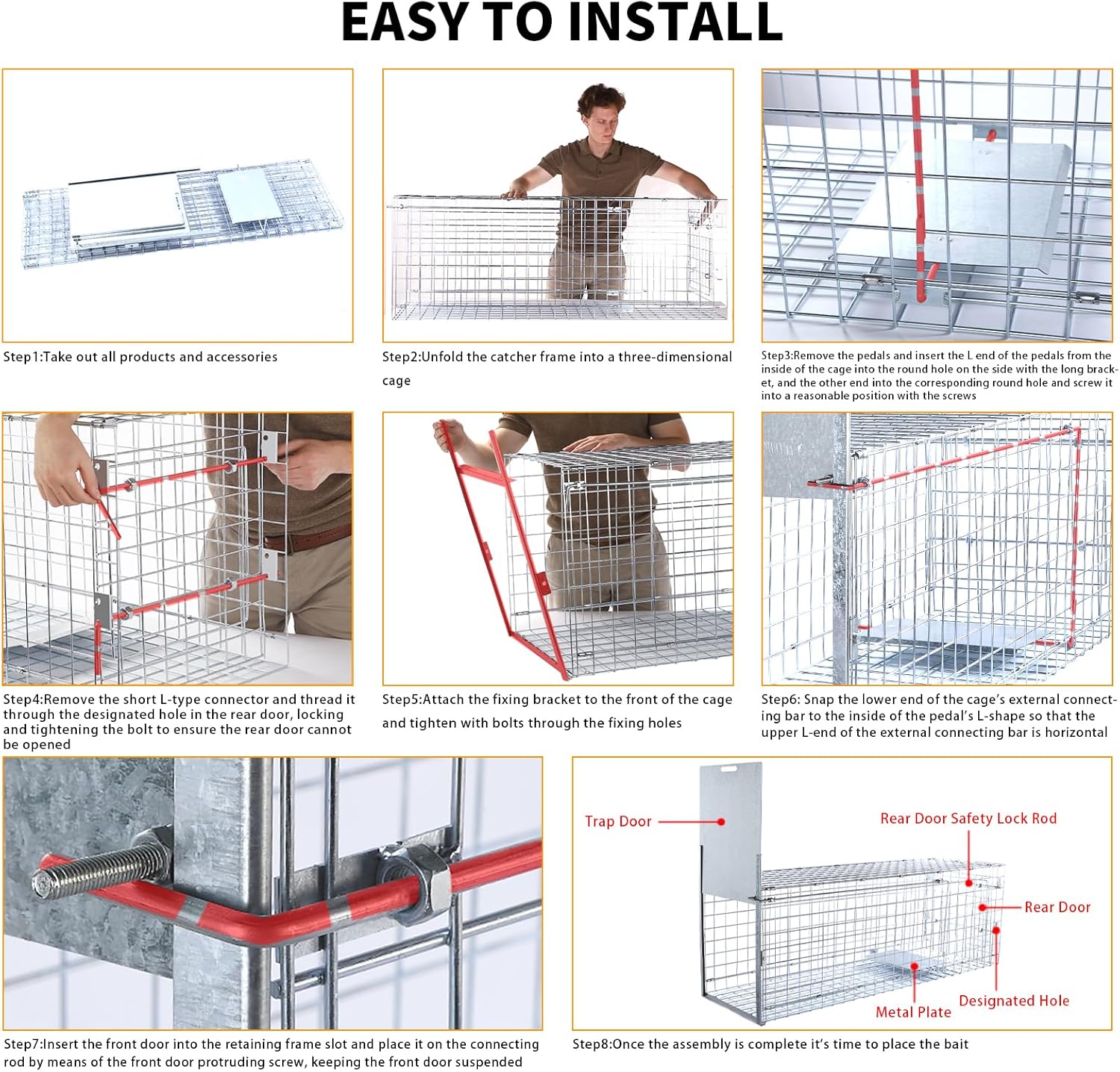 - Specialized Trapping Design-Specialty Designs ensure higher capture rates and fewer escapes when animals are fully in the animal trap, and animals are not harmed while inside animal trap