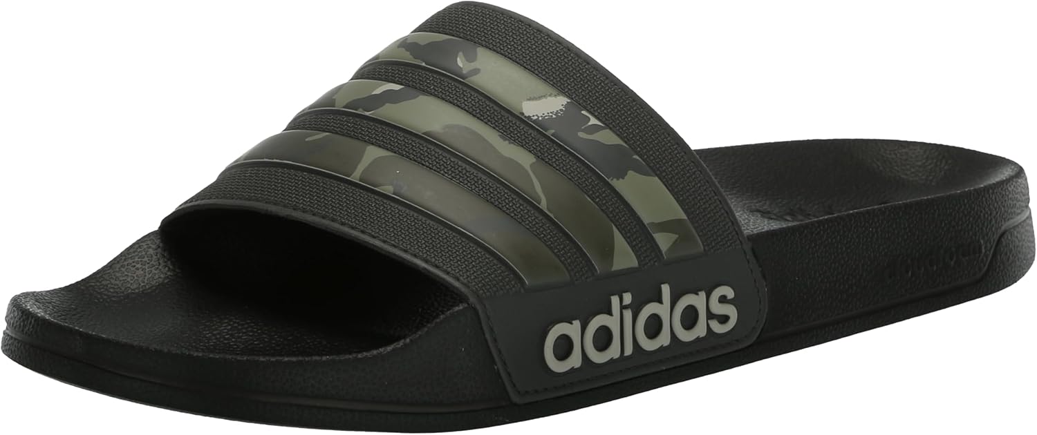 - The Adilette Shower Slides feature a quick-drying single-bandage upper for lasting convenience around water. A Cloudfoam footbed and midsole provide plush cushioning, while the slip-on design ensures effortless wear for poolside relaxation or post-sport recovery.