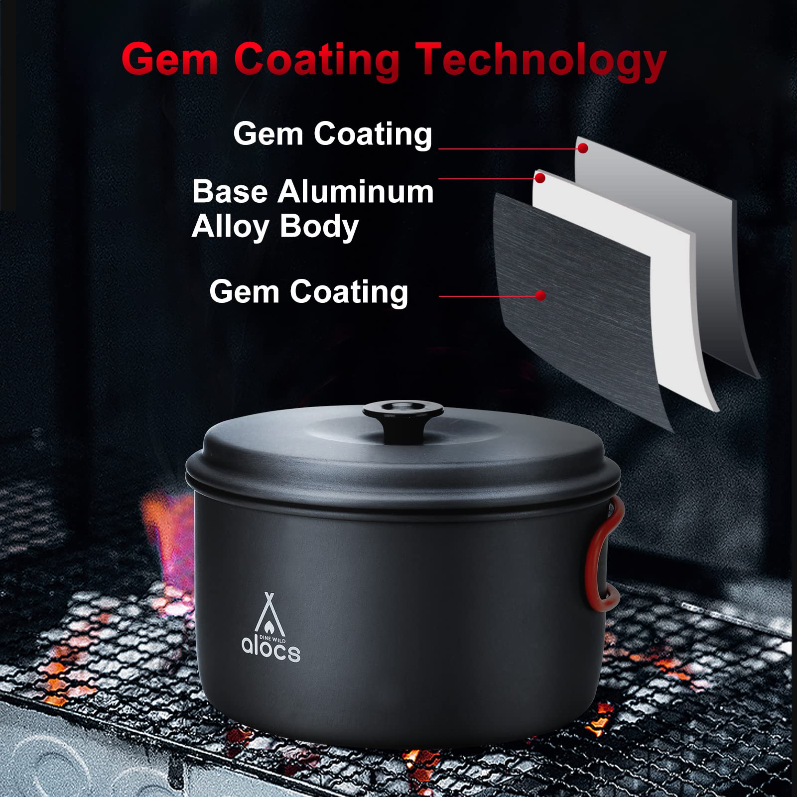 Alocs Camping Cookware Set Camping Gear, Compact Camping Pots and Pans Set, Durable Hard Alumina Camping Cooking Set for Outdoor Backpacking Camping Hiking Picnic, Included Mesh Carry Bag.