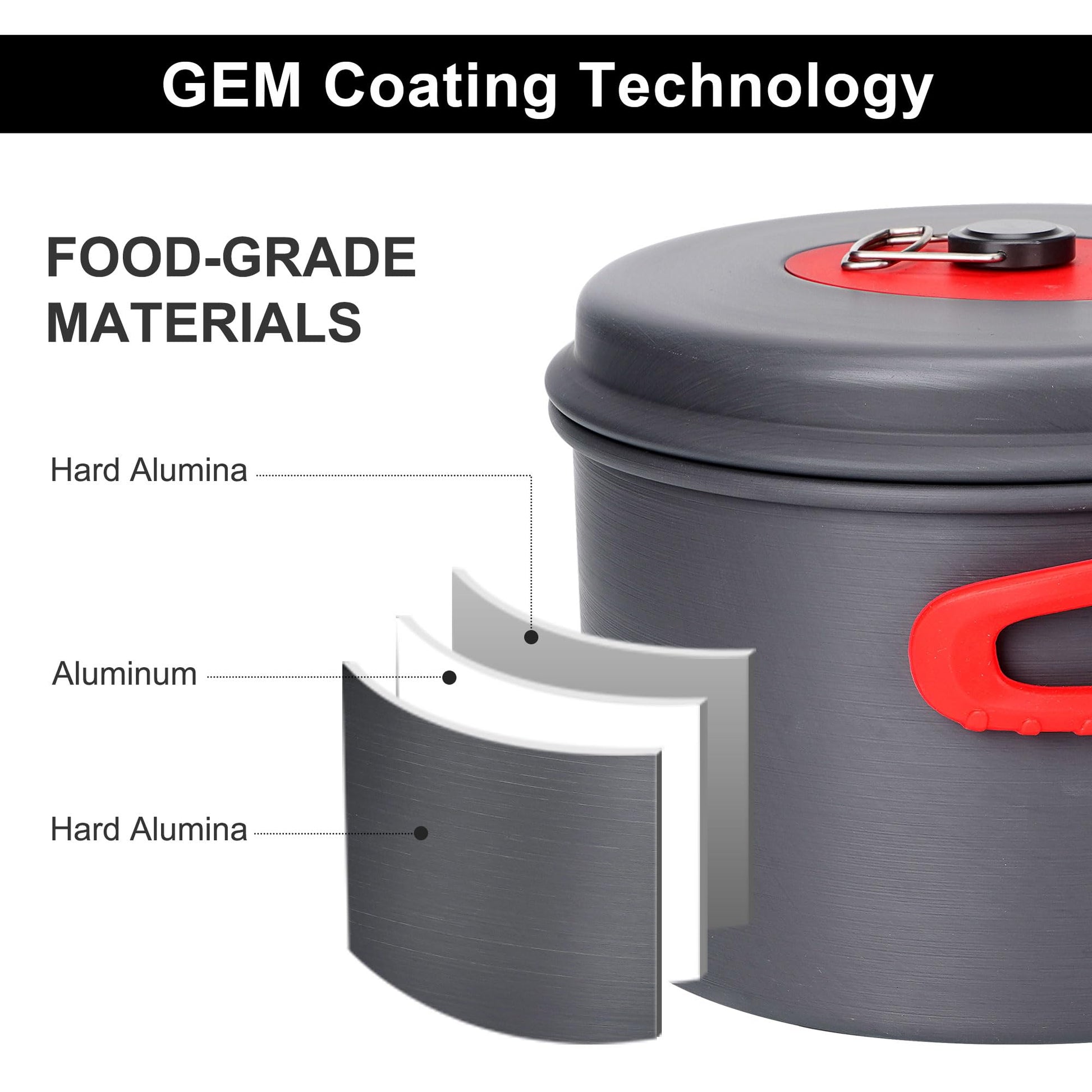 - Durable & Safe: This camping cookware is made of ultra-light hard alumina and food grade silicone material that meets European and American food safety standards, high temperature resistant, scratch resistance, oxidation resistance.