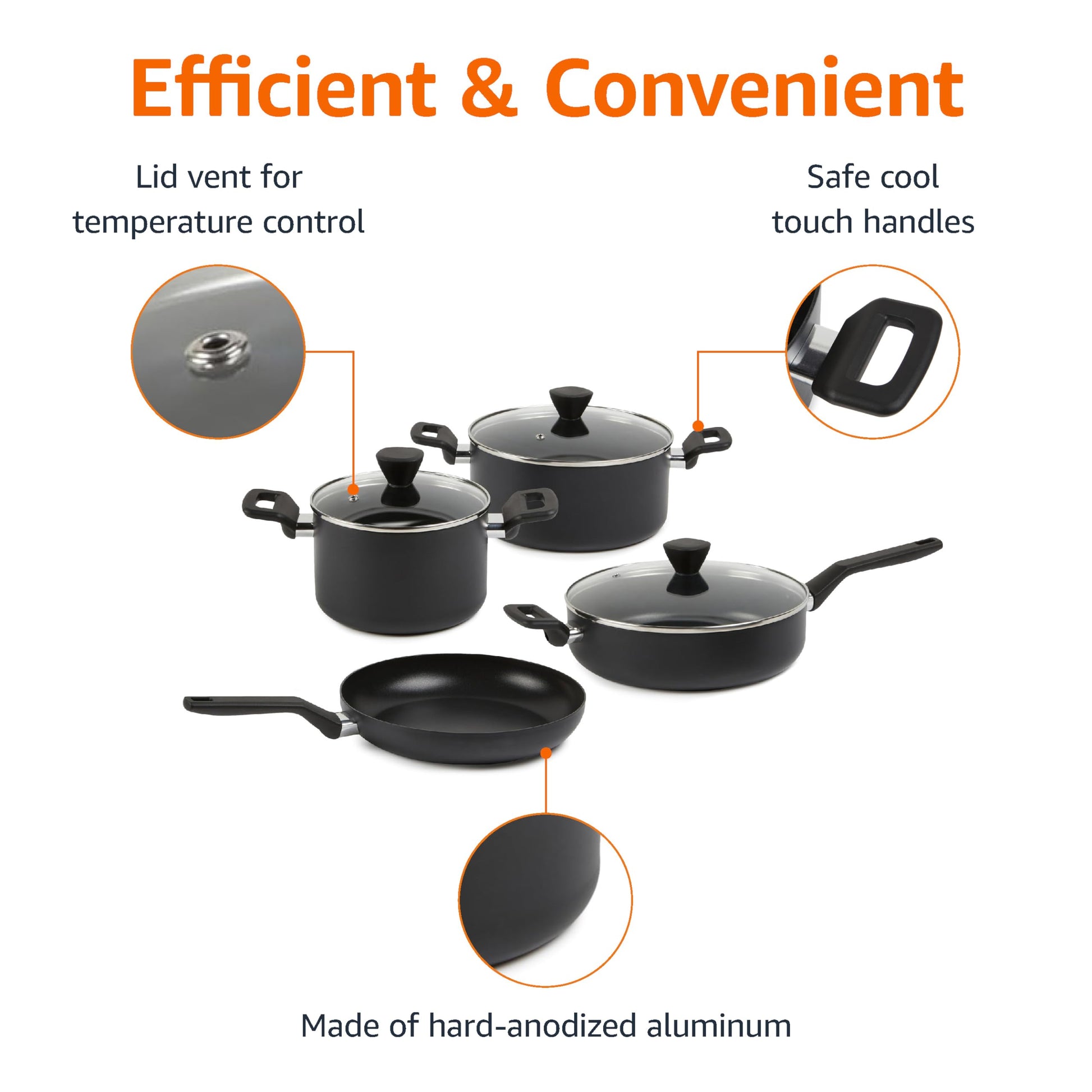 Amazon Basics 10 -Piece Hard Anodized Non-stick Stackable Cookware Pots and Pans Set, Space Saving, made without PFOA, Black