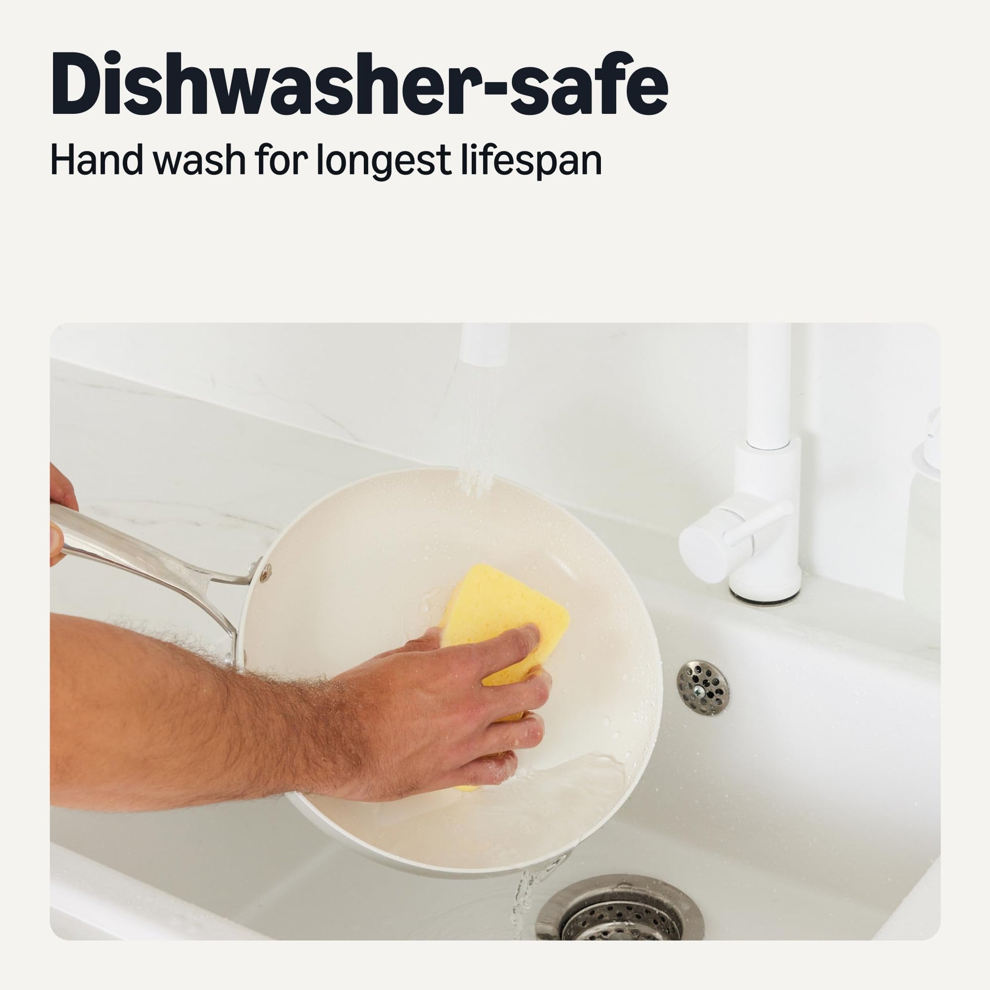 Details: This versatile 3-piece ceramic nonstick pan set works on all stovetops and features PFAS-free coating for healthier cooking and effortless food release. The ergonomic stay-cool handles and dishwasher-safe design make these oven-safe pans (up to 450°F) perfect for everyday cooking. Amazon Basics are the quality products you count on for all your everyday moments.