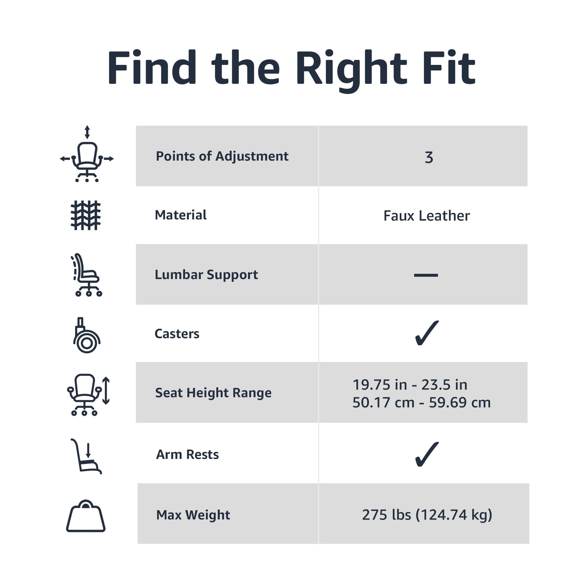 Amazon Basics Classic Puresoft PU Padded Mid-Back Height Adjustable Office Computer Desk Chair with Armrest, 26"D x 23.75"W x 42"H, Black