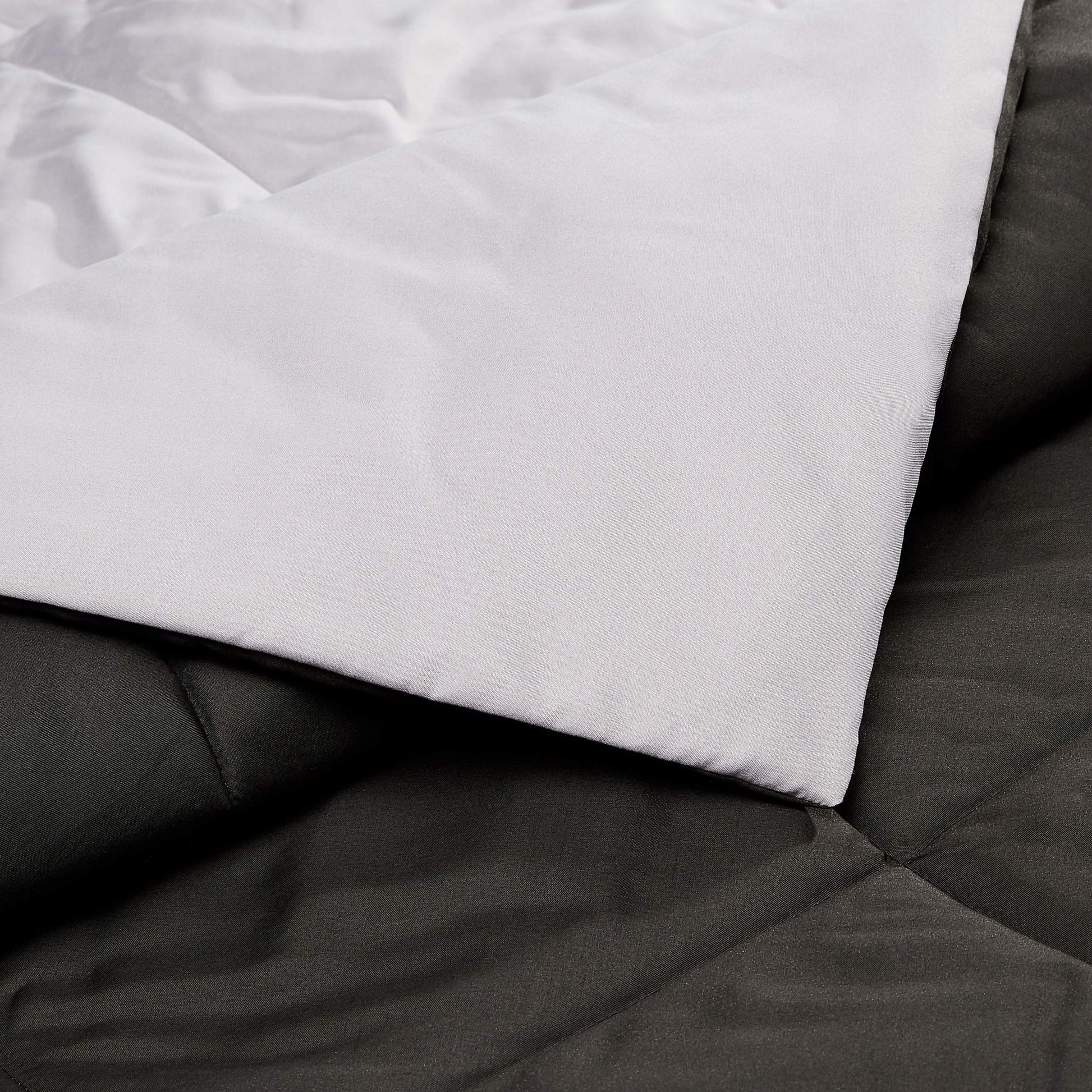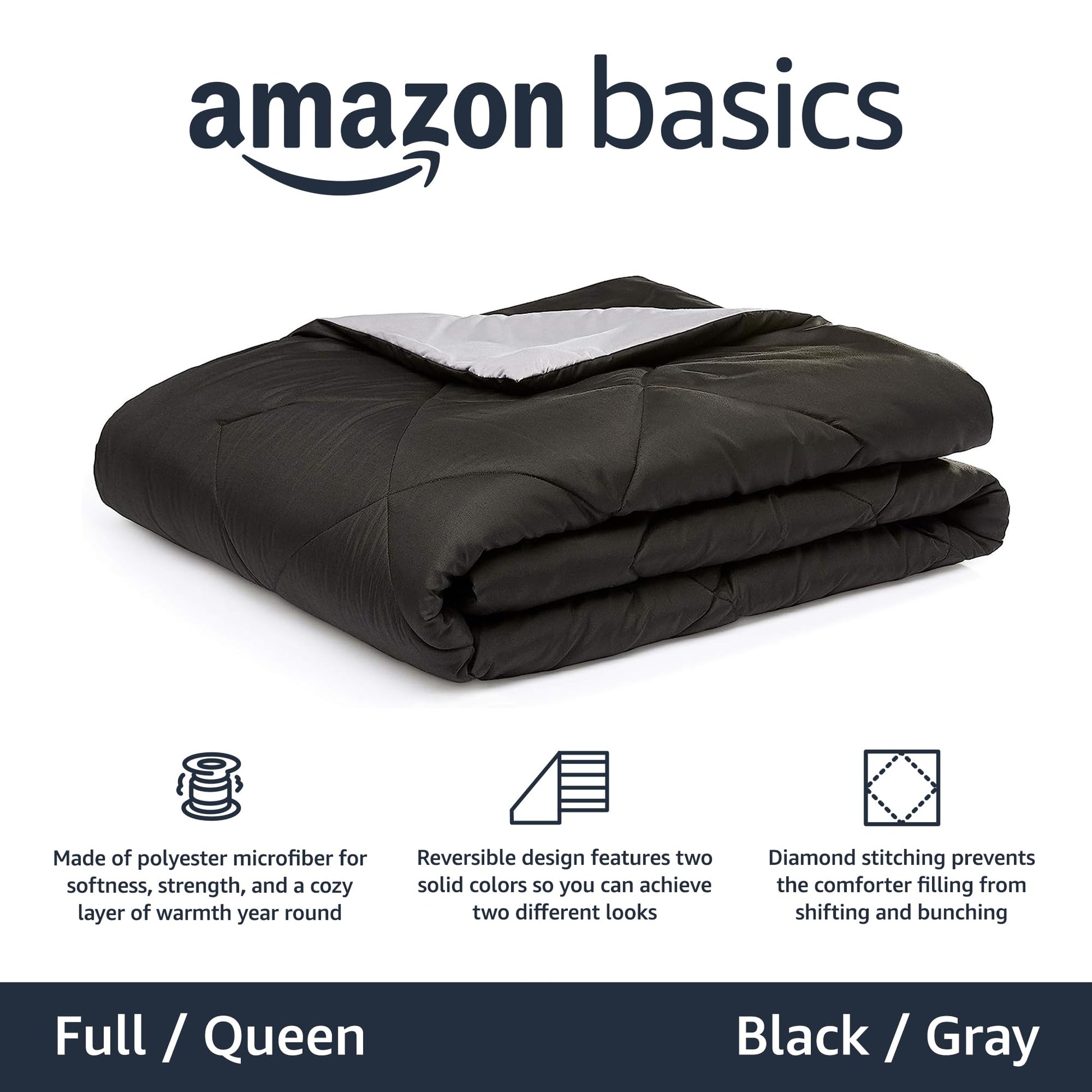 Amazon Basics Comforter Blanket, Reversible, Lightweight Microfiber, Machine Washable, All Season, Full/Queen, Black/Grey