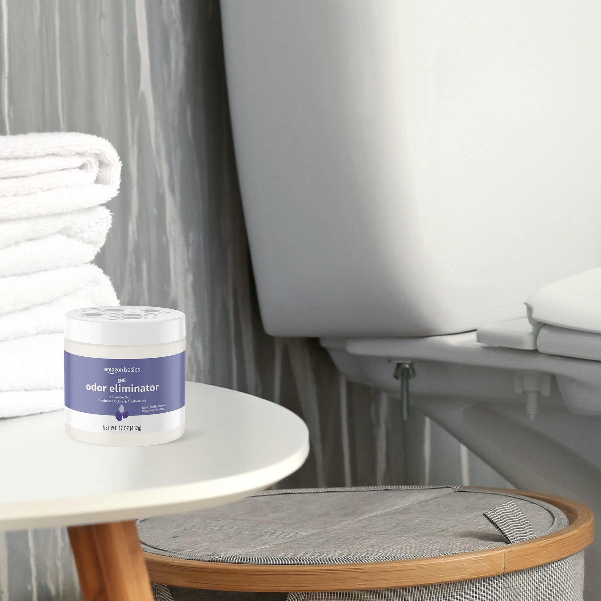 - Includes one, 17 ounce Amazon Basics Gel Odor Eliminator