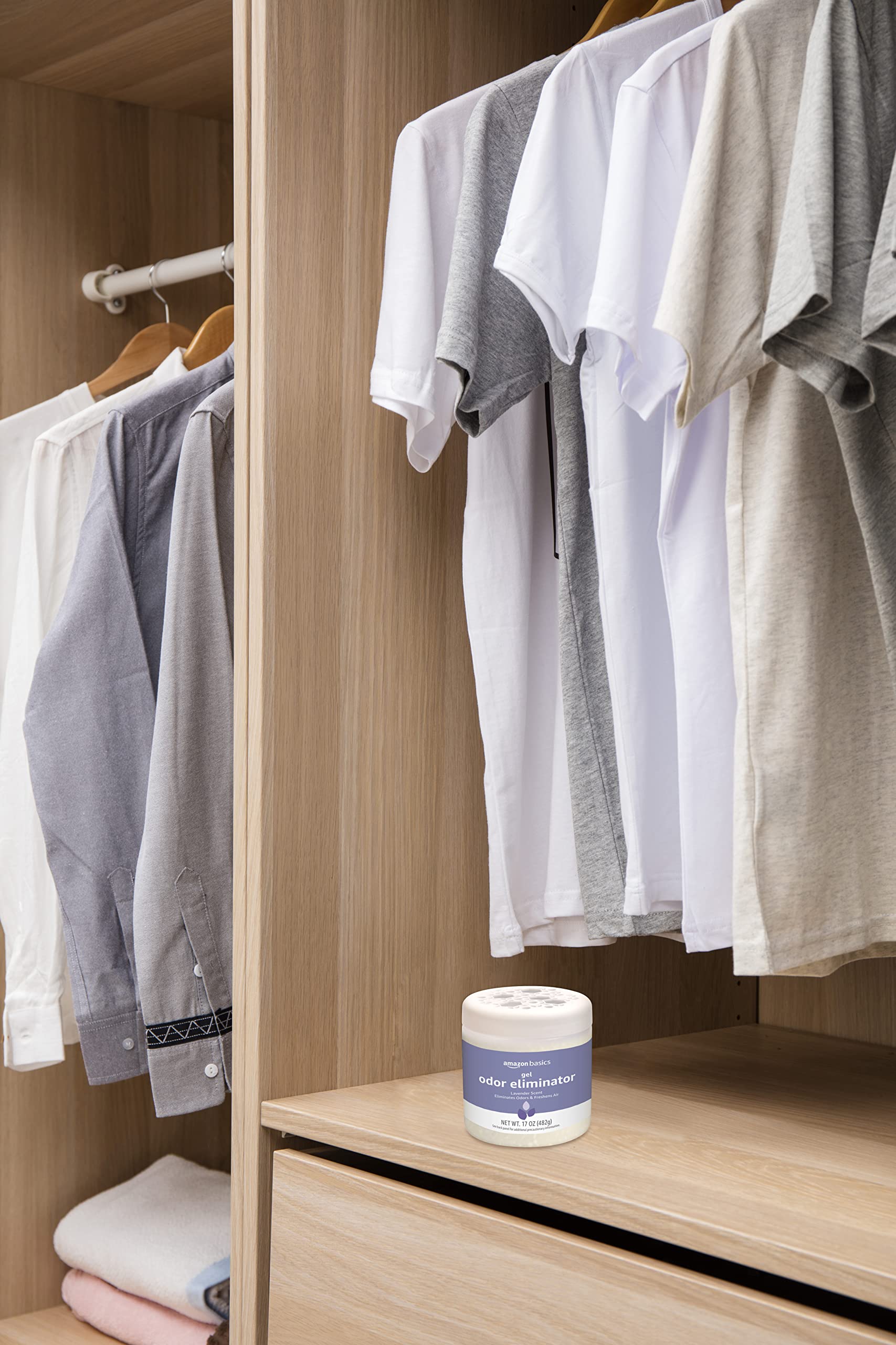 Details: Amazon Basics Gel Odor Eliminator with Lavender Scent works to quickly eliminate unwanted odors throughout your home including those caused by pets, paints, cooking, and even diapers. Continuously freshens the air and controls odors, providing a safe, easy, and effective solution to unwanted smells around the house.