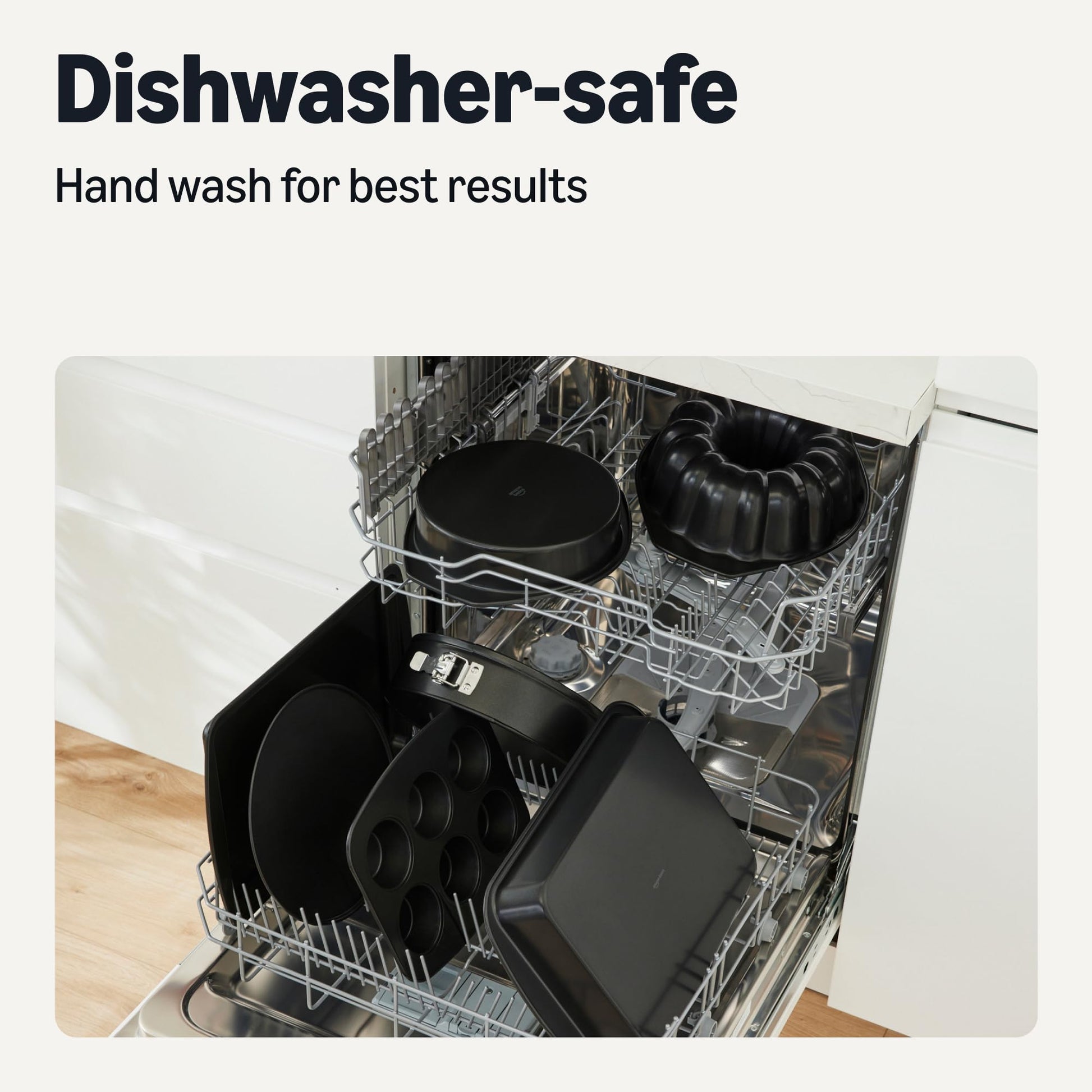 Details: Bake perfect bundt cakes every time with this 10-inch carbon steel pan featuring superior heat conduction and an effortless nonstick coating. Convenient handles and dishwasher-safe design make it a practical choice, while oven-safe temperatures up to 428°F ensure versatile baking performance. Amazon Basics are the quality products you count on for all your everyday moments.