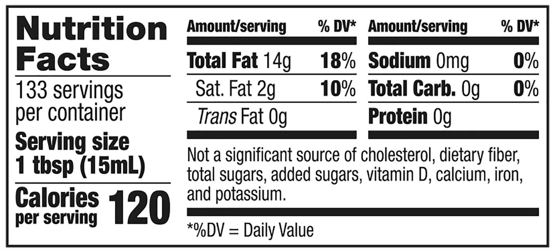- One 2-liter plastic bottle of Extra Virgin Olive Oil