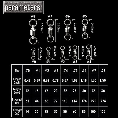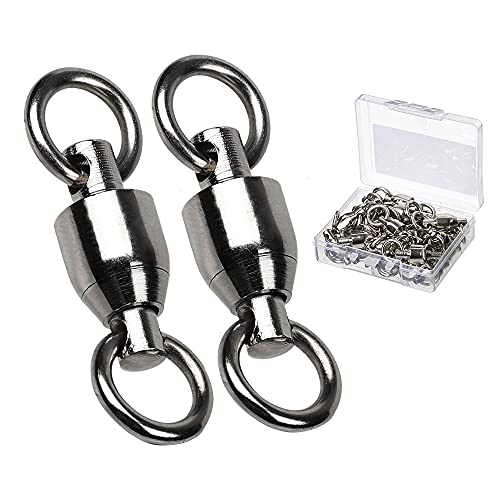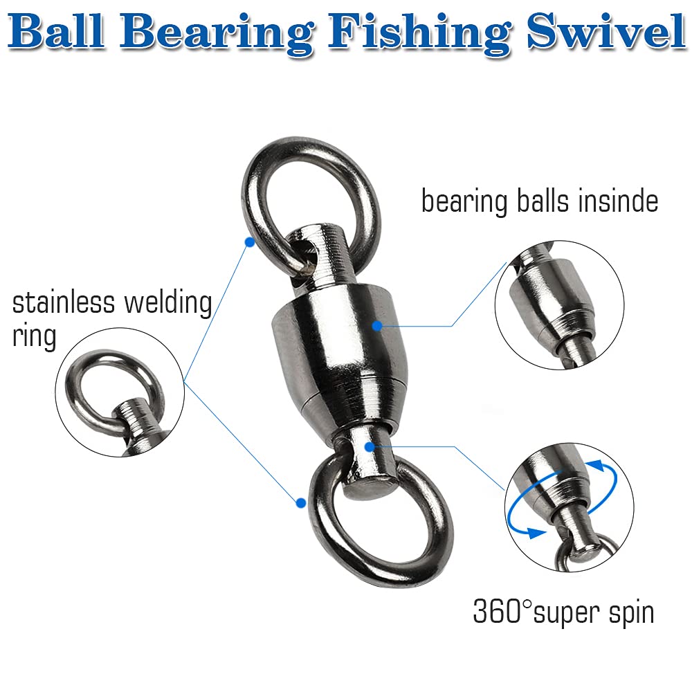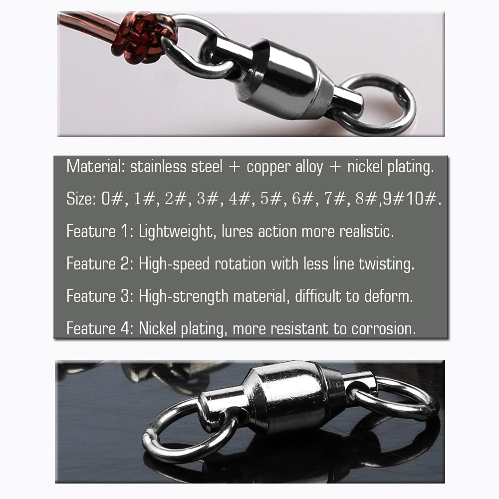 - High Performance Fishing Swivel: AMYSPORTS ball bearing swivels are made for high performance in fishing activities. Features of these fishing connectors such as high strength,corrosion resistant,abrasion resistant,ball bearings on for high speed rotation,solid welded ring for high strength power and not cutting line,make it become popular with fishermen.