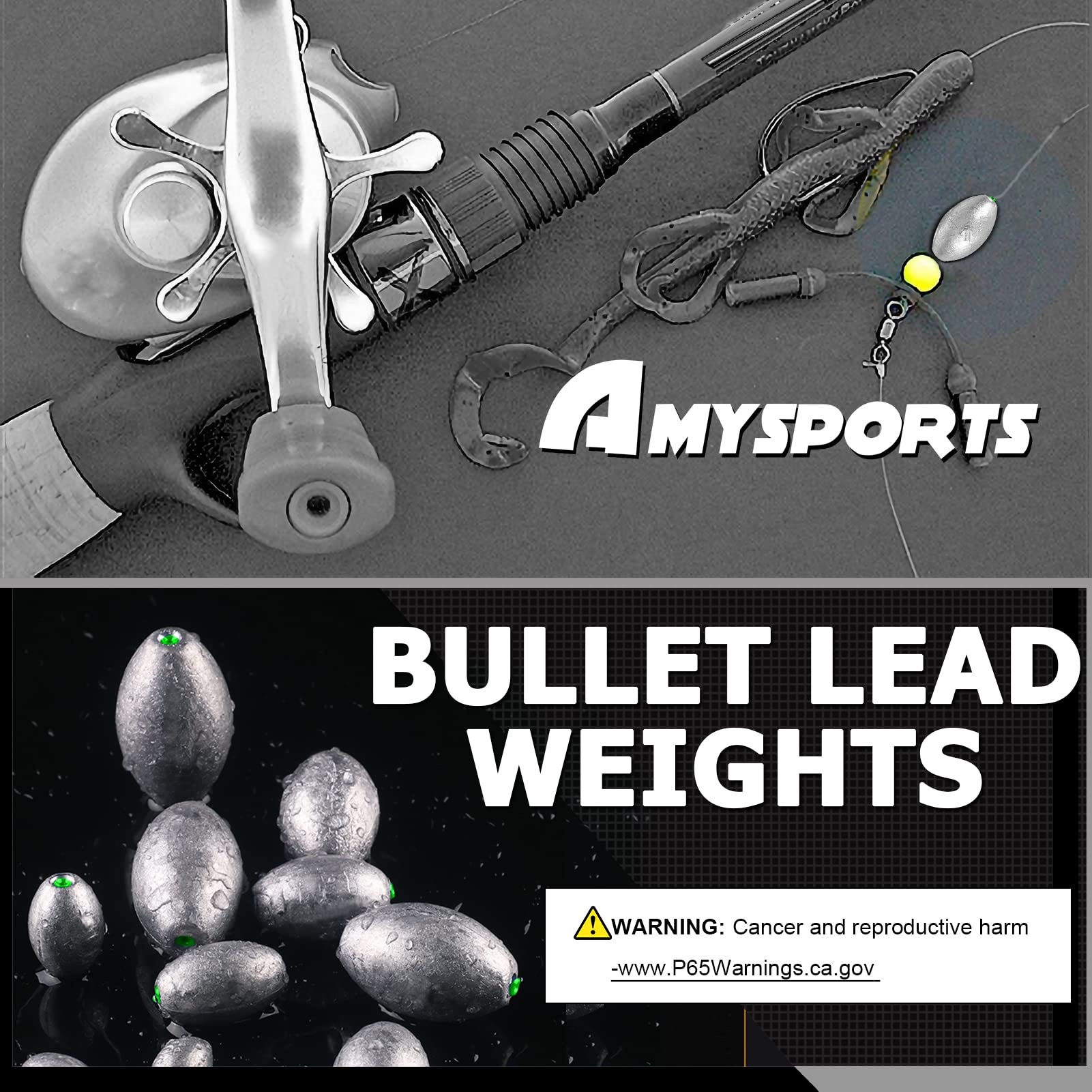 AMYSPORTS Egg Lead Fishing Weights Kit Drop Bass Weights Sinker Tackle Saltwater Casting Fishing Sinkers Set Oval Freshwater