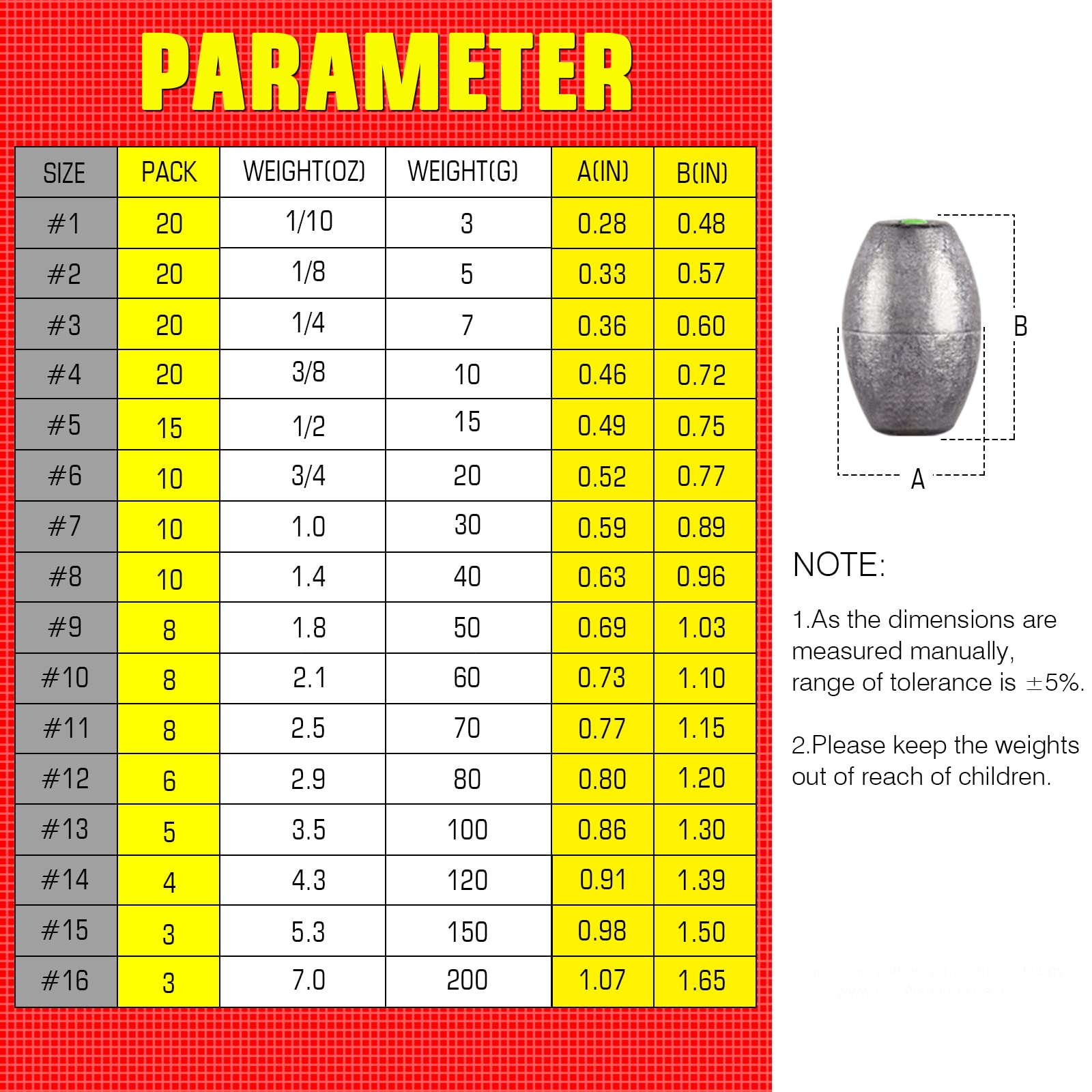 If you want to choose the right fishing weights for your line or lure,this one would be suitable for your using. The material make sure it be corrosion resistant,you can free to use in saltwater. The egg lead weight would be durable the resistance in water and air.The weight on these fishing sinker help to cast line further away then drop into your purpose fishing area.