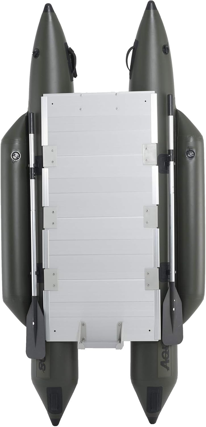 AQUOS Backpack Series 8.8 ft Inflatable Pontoon Boat with Stainless Steel Guard Bar and Folding Seat for One Person Fishing, Aluminum Floor Board, Transport Canada Approved