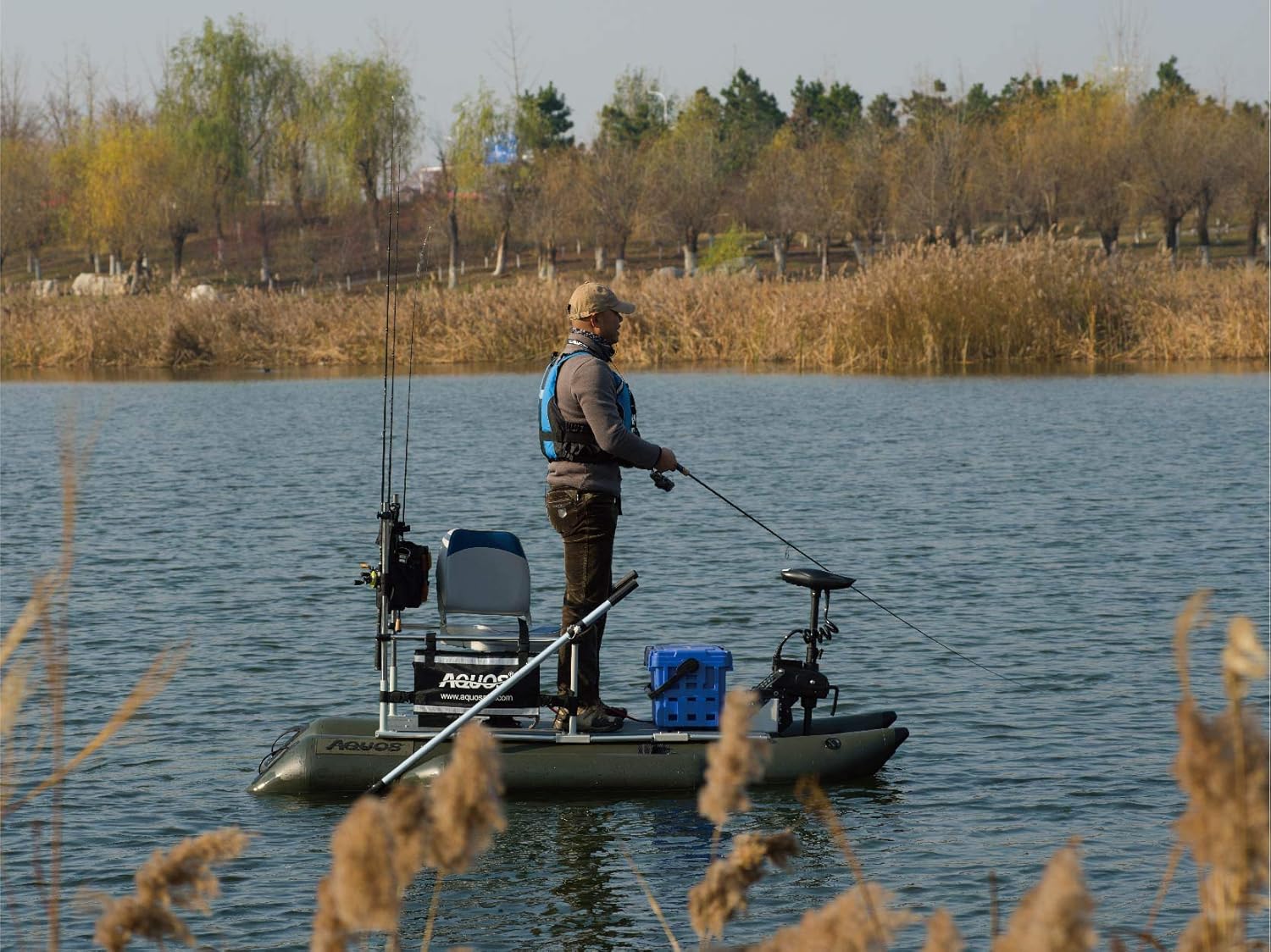 - With fishing in our blood, the AQUOS FM 8.8FT Pontoon Fishing Boat include the guard bar and the swivel seat which will make your long boat rides more comfortable and safer.