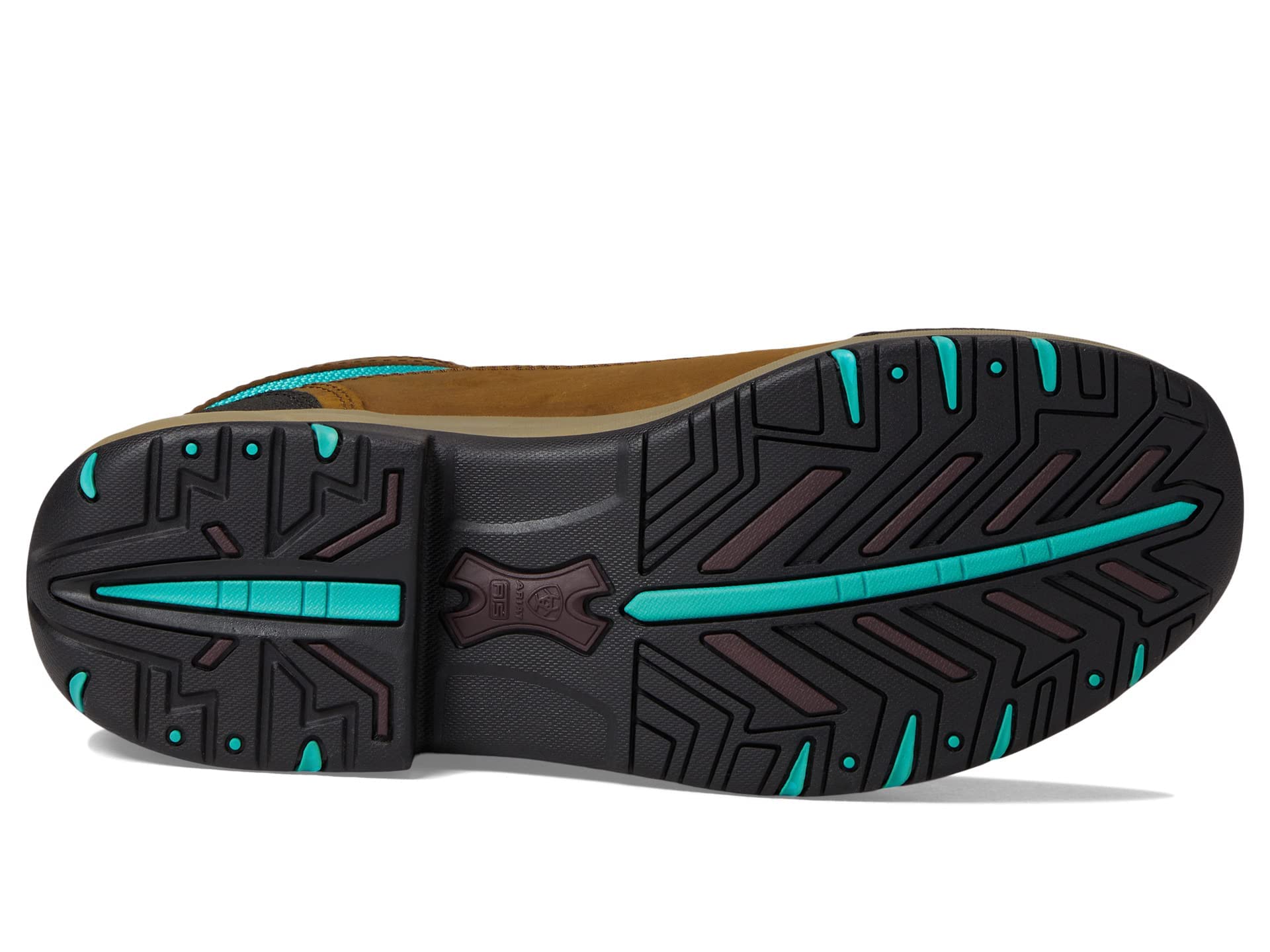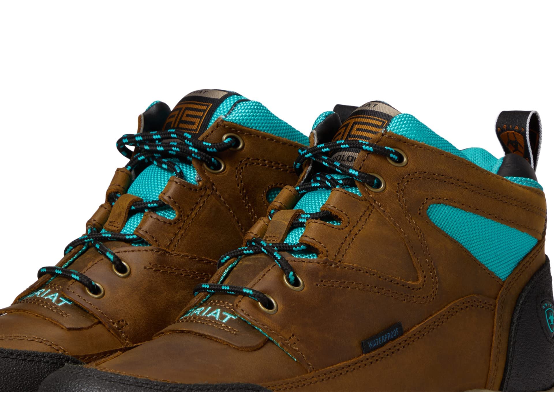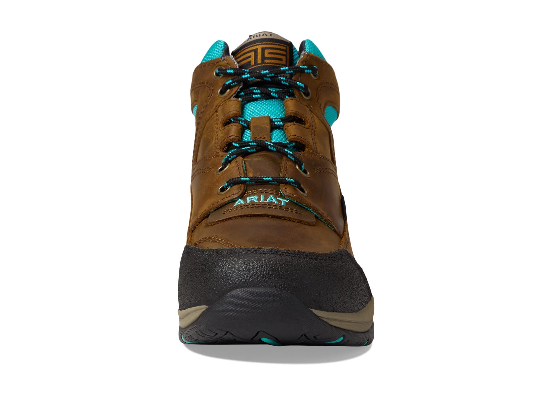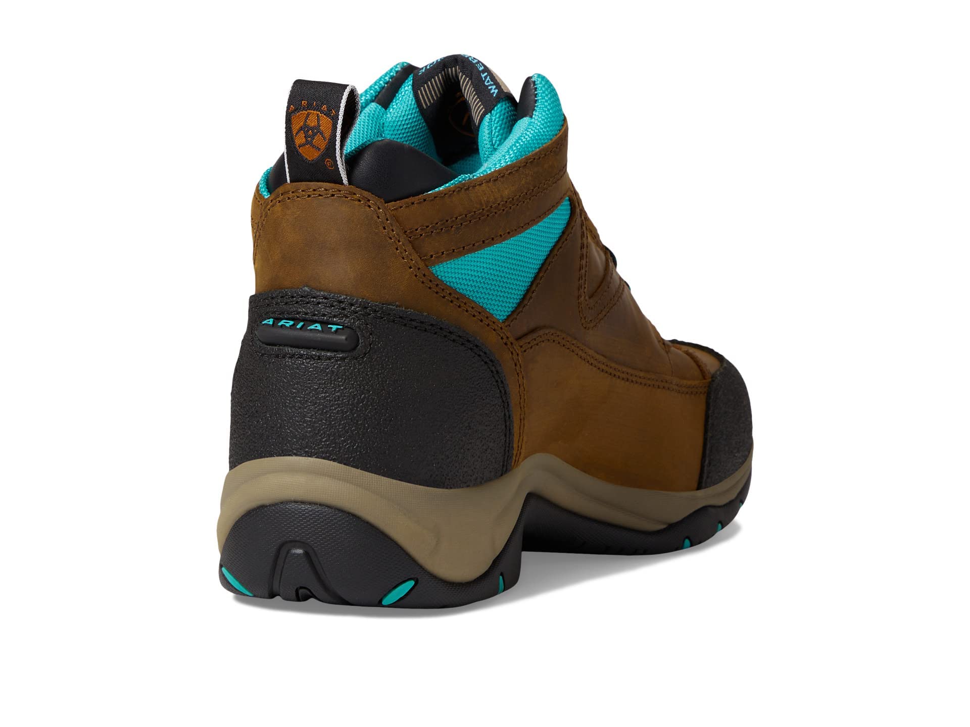Designed to tackle tough terrains, these Terrain Waterproof women's hiking boots from Ariat are the perfect choice for trekkers, adventurers and anyone who loves the great outdoors. Built for the trail, these work boots for women don't sacrifice comfort or support, even in shifting weather conditions. The highly effective ATS technology is incorporated to offer stability and all-day comfort while the waterproof PRO construction makes sure that your feet stay dry in wet conditions. Showcasing a tough, oiled, full-grain waterproof leather, these all-weather shoes for women prevent water from entering inside. The moisture-wicking lining promotes optimum foot hygiene while the EVA midsole offers maximum shock-absorption and cushioning. They offer superior grip without the lug mess of other boots and easily wipe clean. Whether it’s ice, mud, or puddles, you can be sure of the comfort and durability these women's hiking boots won't fade.