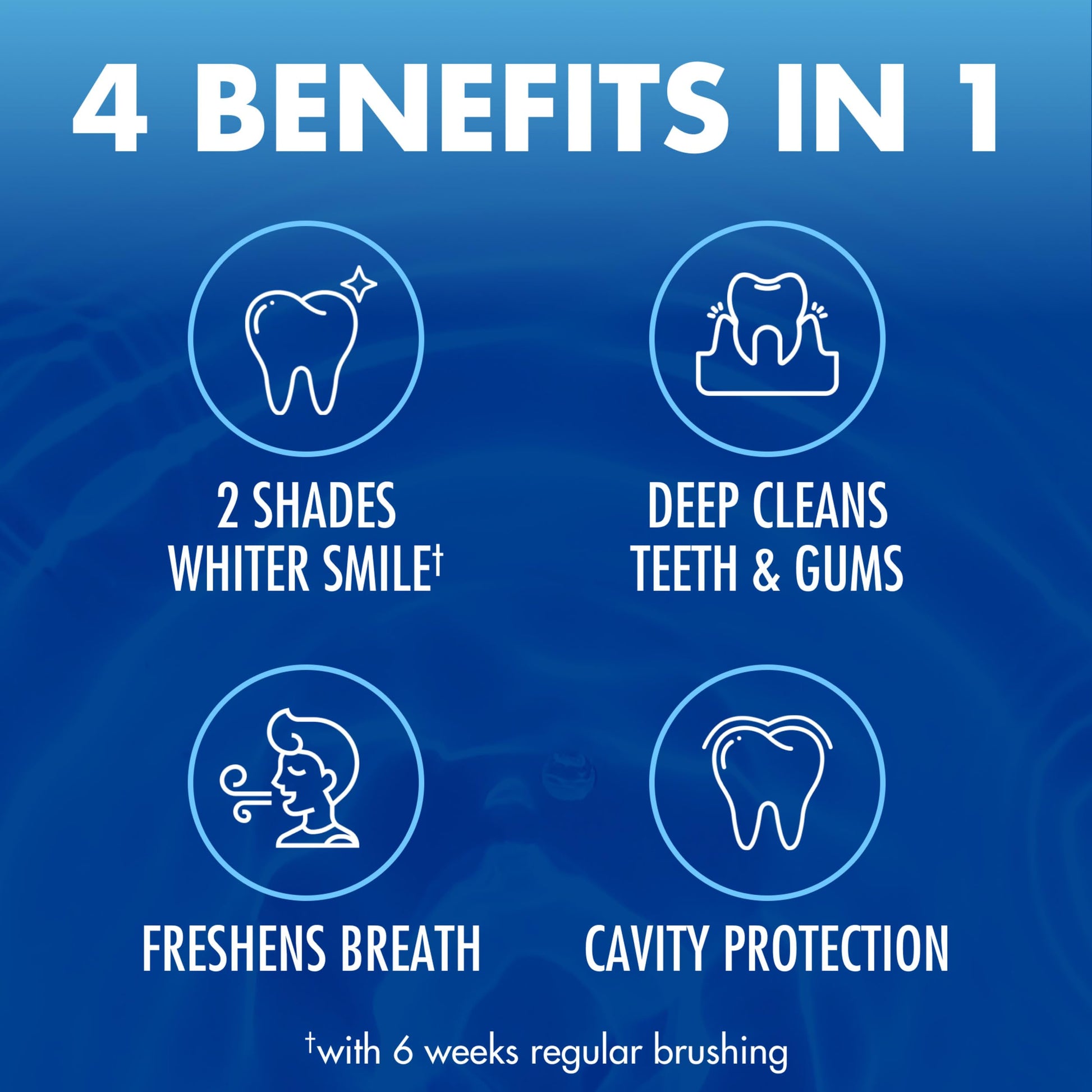 - Multiple oral care benefits in one for a holistic approach to a healthy mouth; it gently whitens, deep cleans teeth and gums, helps protect against cavities, and freshens breath with an invigorating Clean Mint flavor