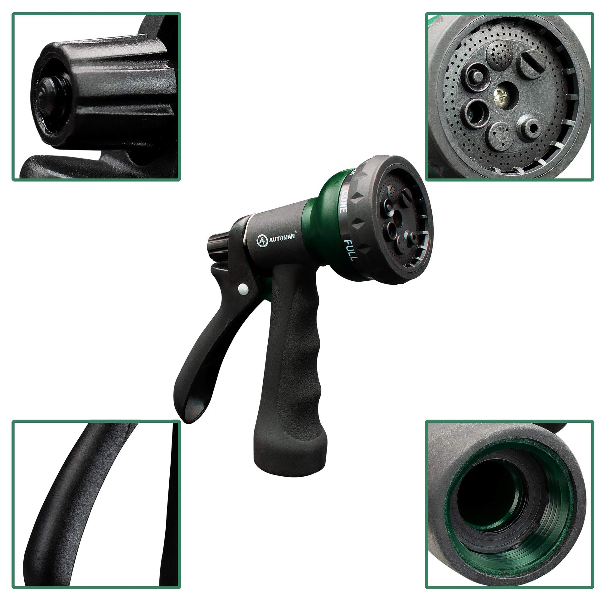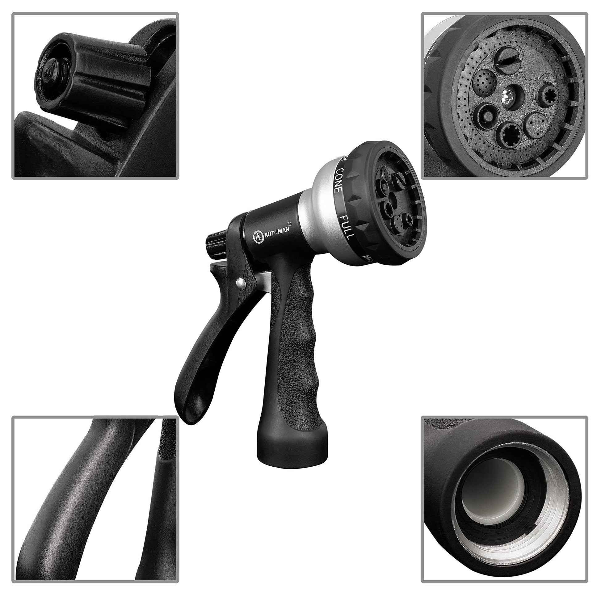 AUTOMAN-Garden-Hose-Nozzle, ABS Water Spray Nozzle with 7 Adjustable Watering Patterns, Slip Resistant for Watering Plants, Lawn& Garden, Washing Cars, Cleaning, Showering Pets & Outdoor Fun.