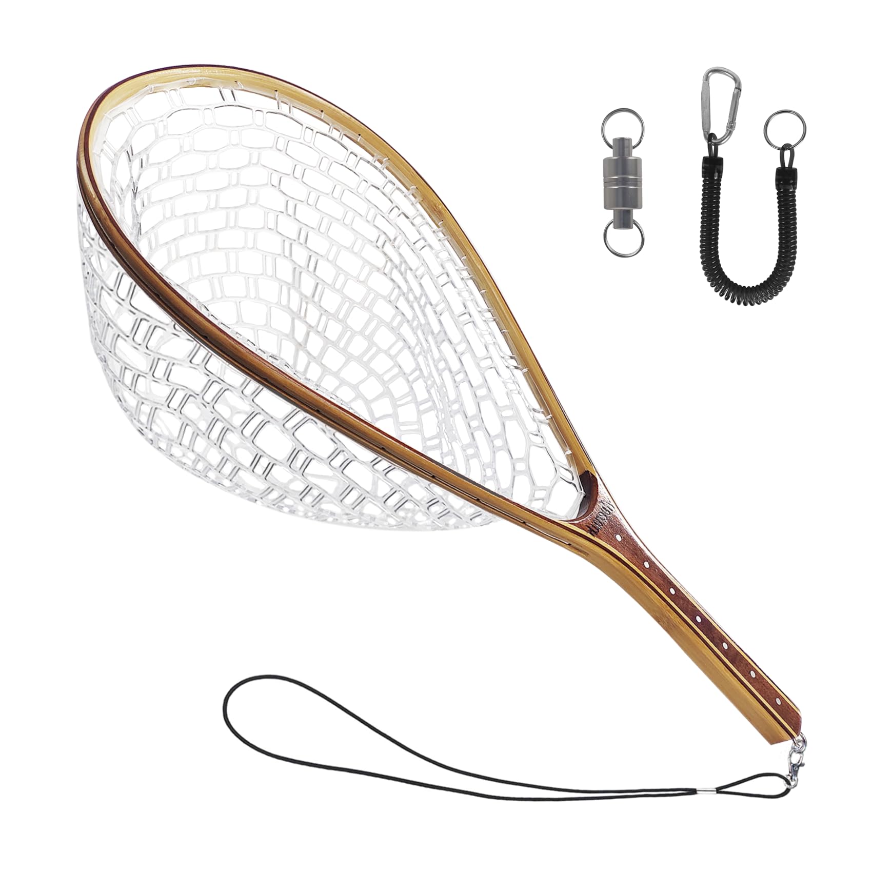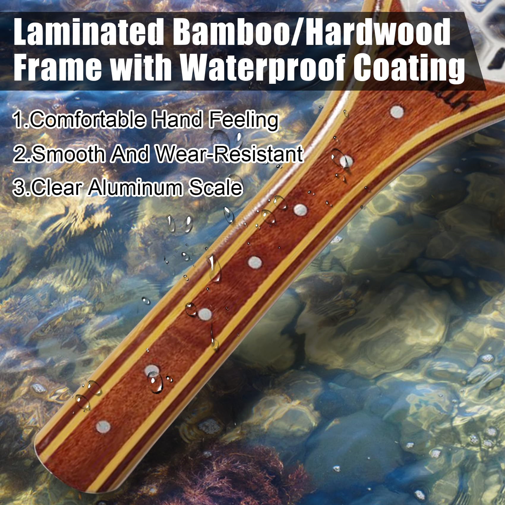 - [Sturdy Wooden Handle]: Made from laminated bamboo and hardwood, the frame and handle of this net offer a smooth, comfortable grip. Enhanced with a special waterproof and abrasion-resistant coating, this handle is engineered for long-lasting durability.