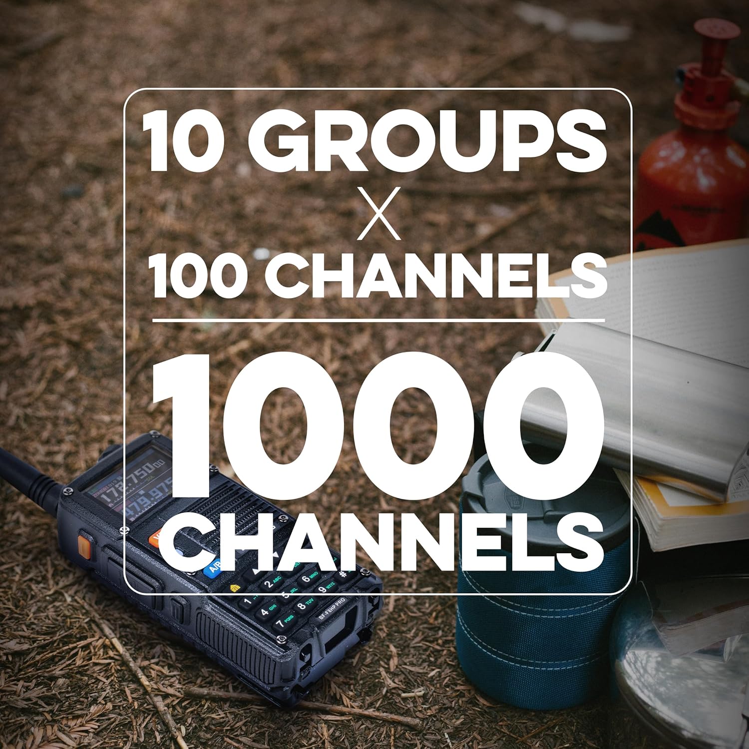 Organize up to 1000 channels across 10 groups, with 100 channels per zone. Ideal for advanced users managing complex communications.