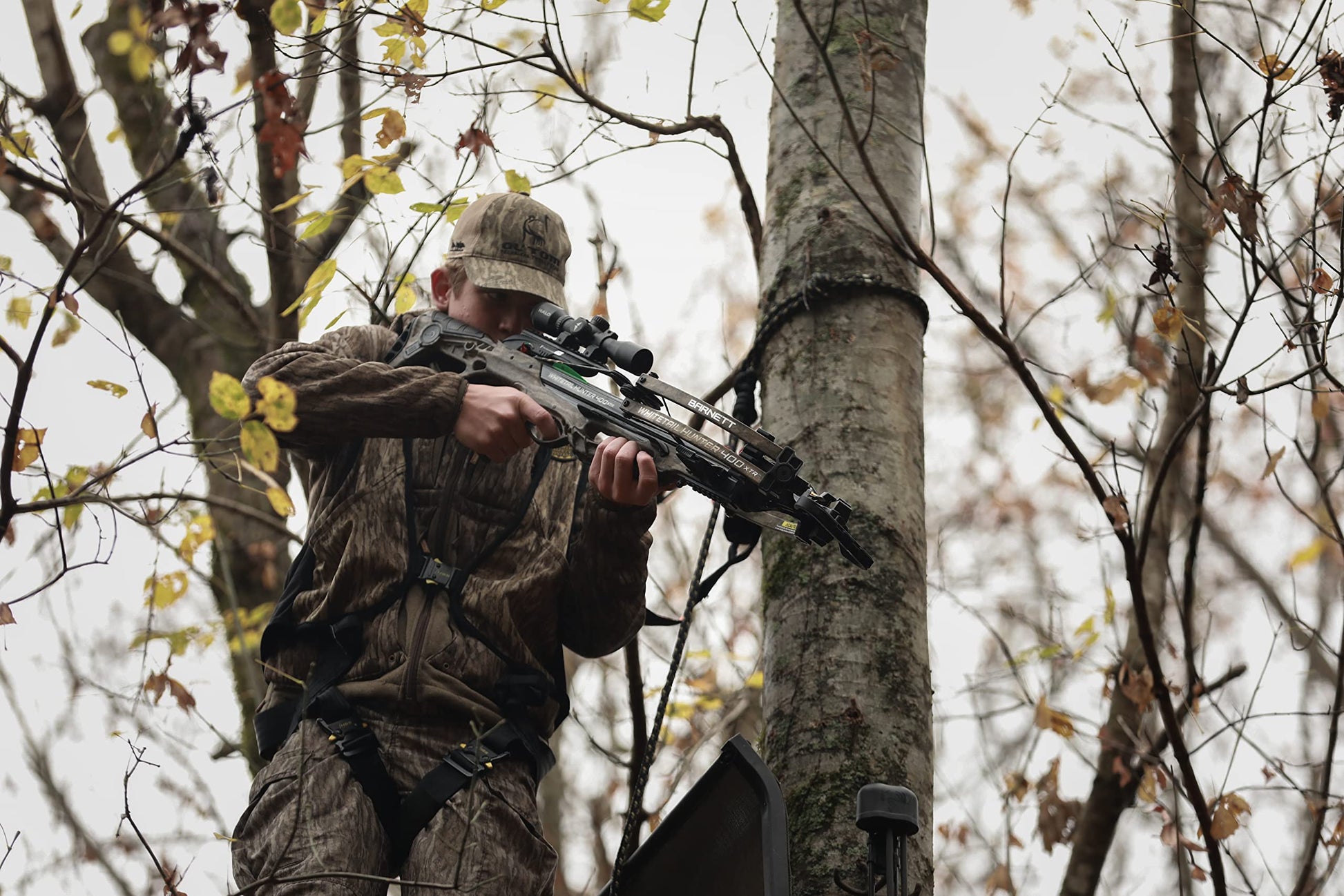 - BARNETT WHITETAIL HUNTER CROSSBOW 400XTR WITHOUT CRANK DEVICE: High-performance compound crossbow in Mossy Oak Bottomland with complete hunting accessory package. The lightweight crossbow is ultra-compact, shooting 400 feet per second