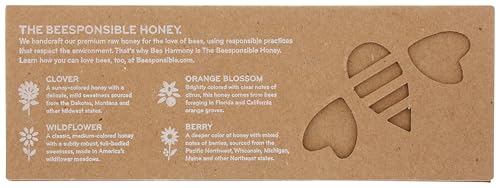 Bee Harmony Classic Honey Flight, Mini Honey Gift Set, 4 Jars, 3 OZ Each, Premium, Raw, Made in the USA