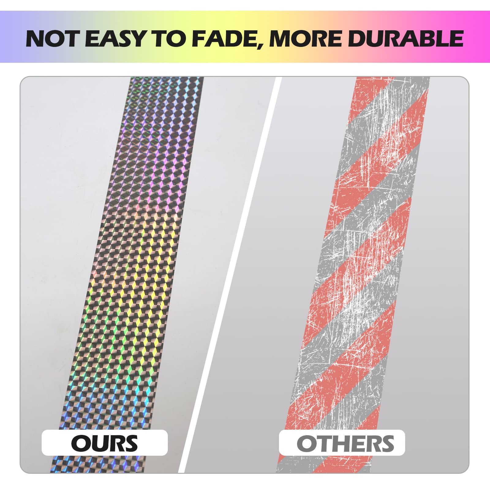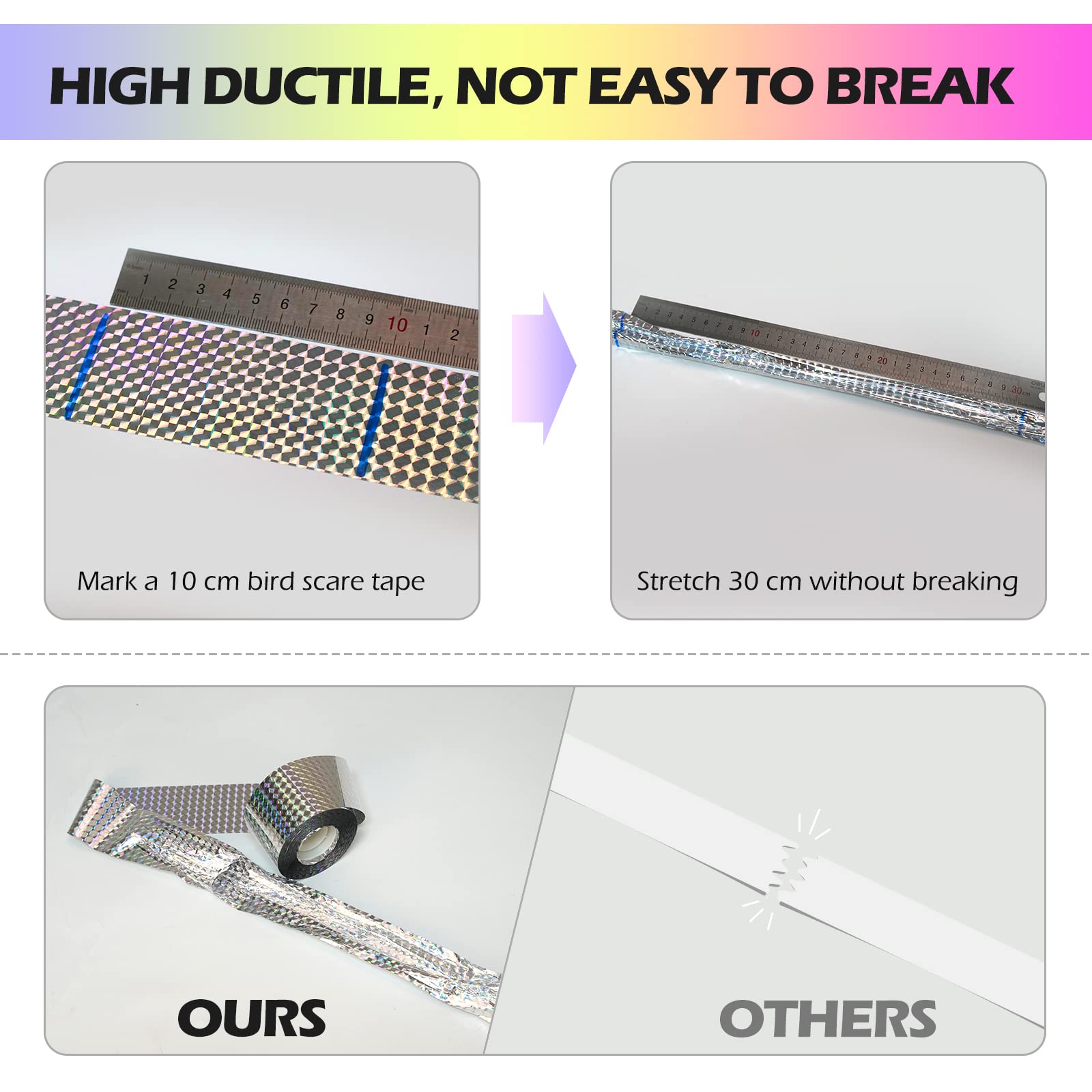 - 【Quality Assurance】 Our bird scare tape is made of high-quality, UV-resistant PET material, ensuring it is weatherproof, corrosion-resistant, and non-fading. It can be repeatedly reused, making it a cost-effective solution for keeping birds away from your property.