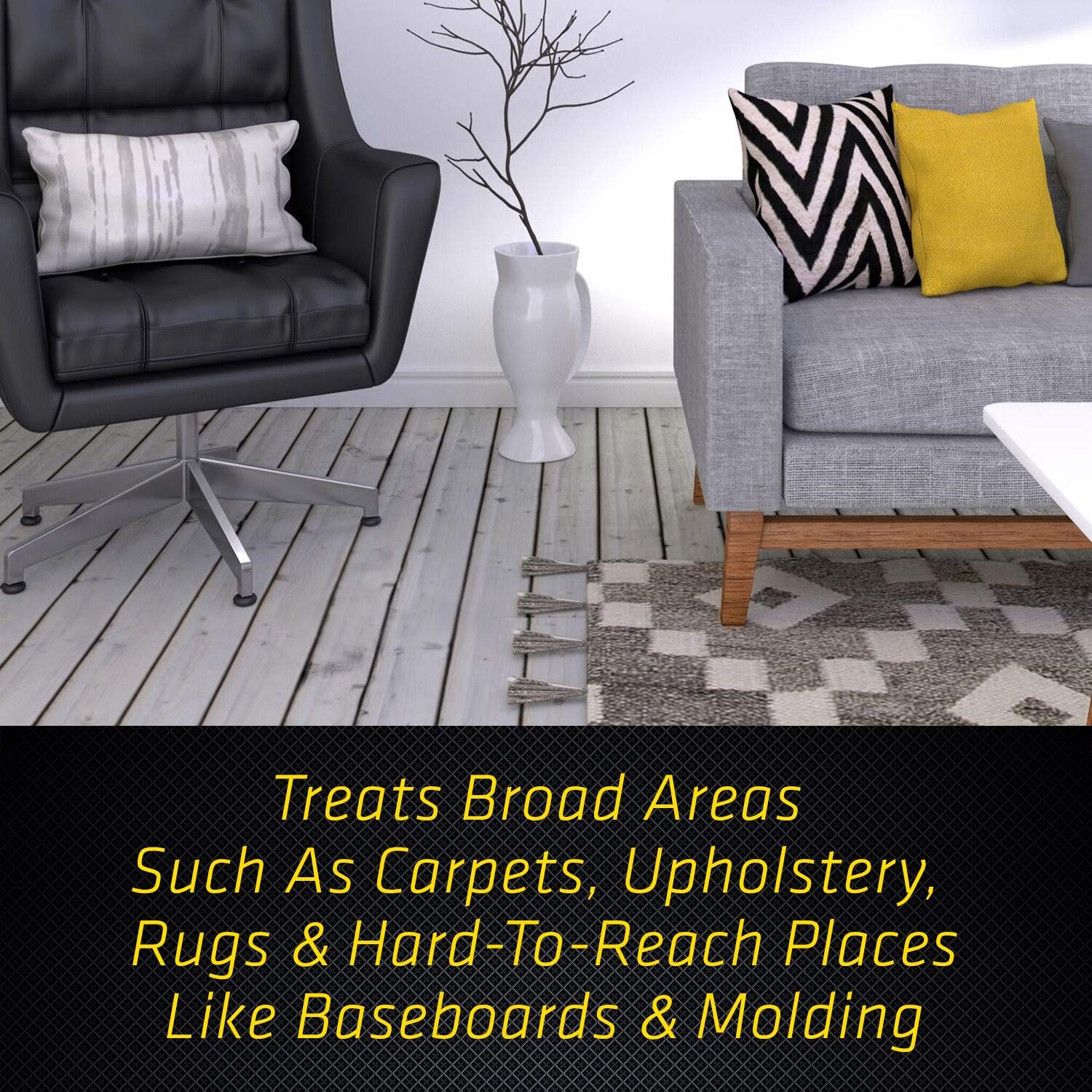 - HOME FLEA TREATMENT: Ideal for carpets, upholstery, rugs, baseboards and moldings