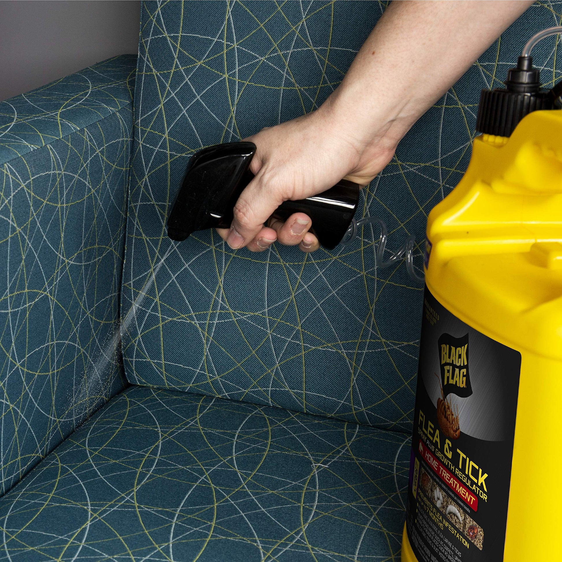 Insects invading your corner of the world? Whatever insect you're fighting, Black Flag products are dedicated to providing the tools you need to regain control. With formulas that act fast & never back down, Black Flag insect controls have been arming homeowners in the battle against invading bugs for more years than any other brand. Black Flag flea & Tick spray Plus growth regulator home treatment kills fleas, flea eggs, flea larvae & ticks indoors. Use it on carpets, upholstery, rugs & hard-to-reach places like baseboards & moldings. This formula contains Nylar insect growth regulator to break the flea life cycle by preventing fleas from developing into biting adults forup to 7 months. It also controls carpet beetles & dust mites. When used as directed, this product will not stain furnishings or carpeting. Inspect the treatment area for fleas two weeks after the initial treatment & reapply if necessary. If ticks are present, spray directly to kill. For long-term flea control, apply 1 gallon per 750 square'. Use as part of a comprehensive flea & Tick treatment plan that includes coordinated treatment of the home, yd & pet. Treatment & prevention work together, so it's key to treat all three areas simultaneously. This integrated pest management approach involves inspection, cleaning & targeting eggs, larvae & adults with the appropriate insecticides. Follow-up treatments are almost always necessary.
