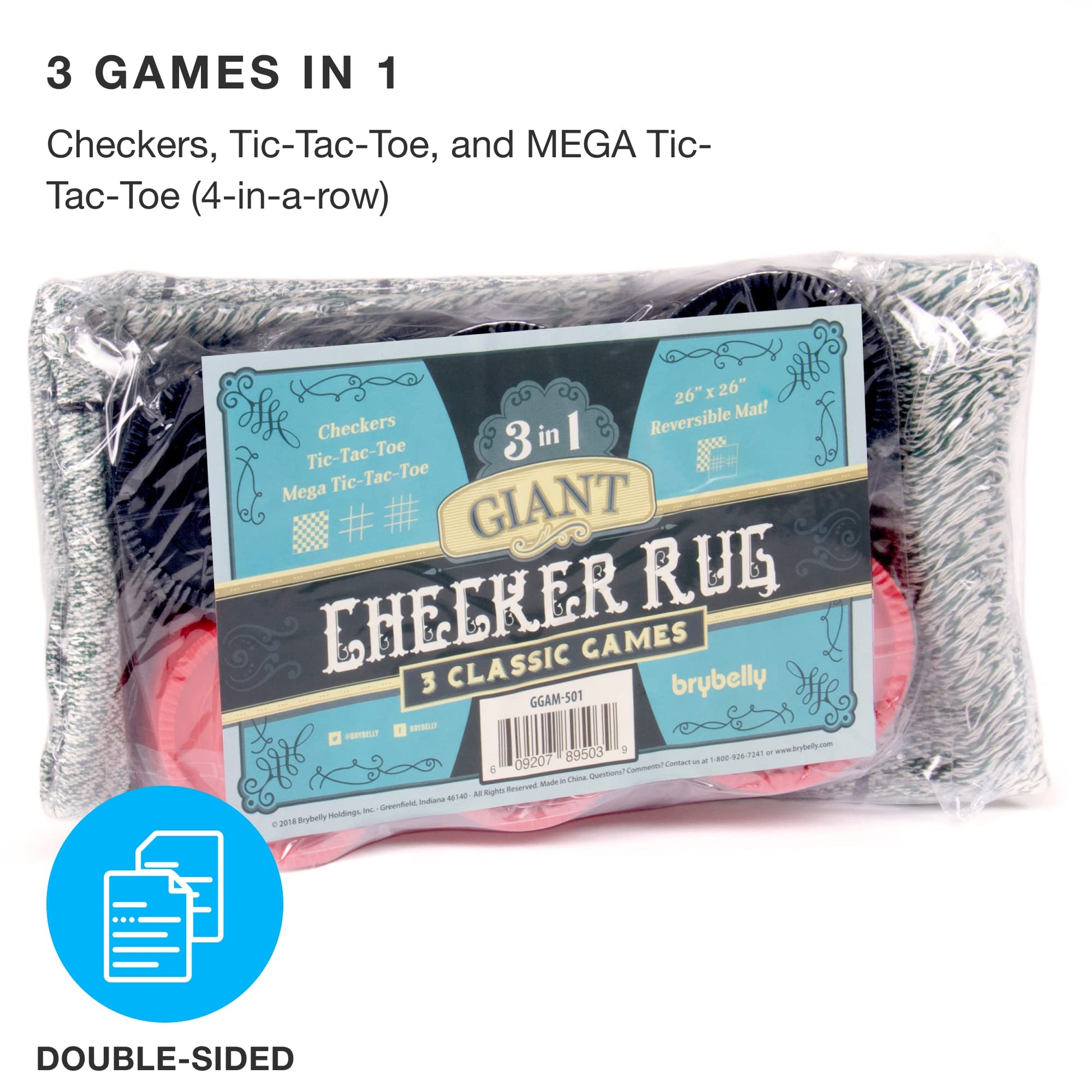 Brybelly Large Checkers Set - Giant Checkers Game for Indoor/Outdoor - Jumbo Classic Board Games for Friends and Family - 3-in-1 Checkers and Mega Tic Tac Toe