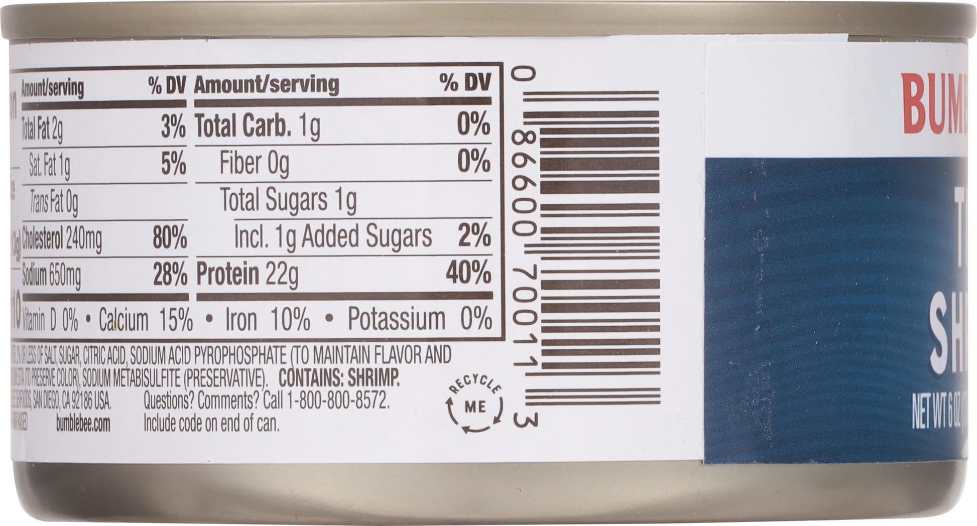 - SHELLFISH AS FUEL: Six-ounce can of protein-packed shrimp will keep you powered with 22g of protein per can