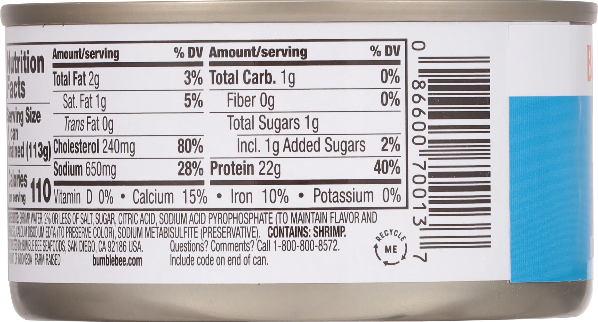 - BUMBLE BEE SHRIMP: Our Tiny Shrimp are just the right size for appetizers, shrimp salad, pasta, and shrimp tacos. Drain before use; drained weight is 4 ounces of shrimp.