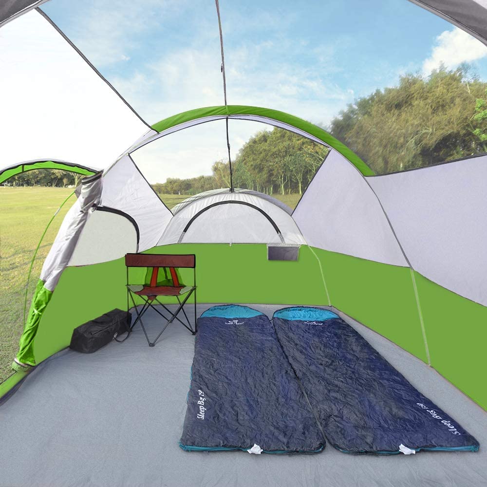 - PACKAGE INCLUDED: Tent body, Rainfly with attached guylines, Tent Poles, Stakes, 1 Room Divider, Carry Bag, Warranty Card.