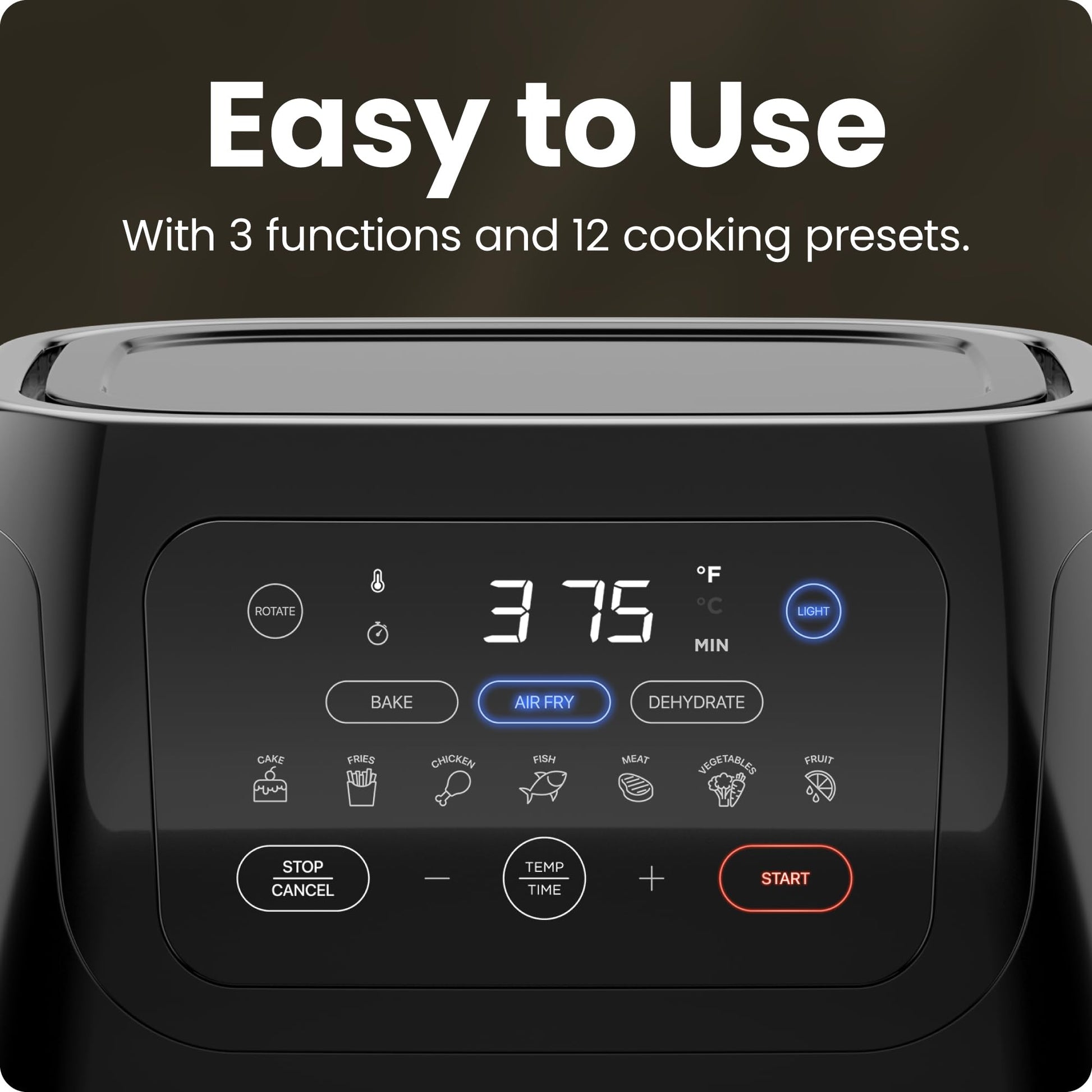 - Versatile countertop cooking: Air fry, bake, dehydrate, rotisserie, or roast to crispy perfection in one convenient appliance
