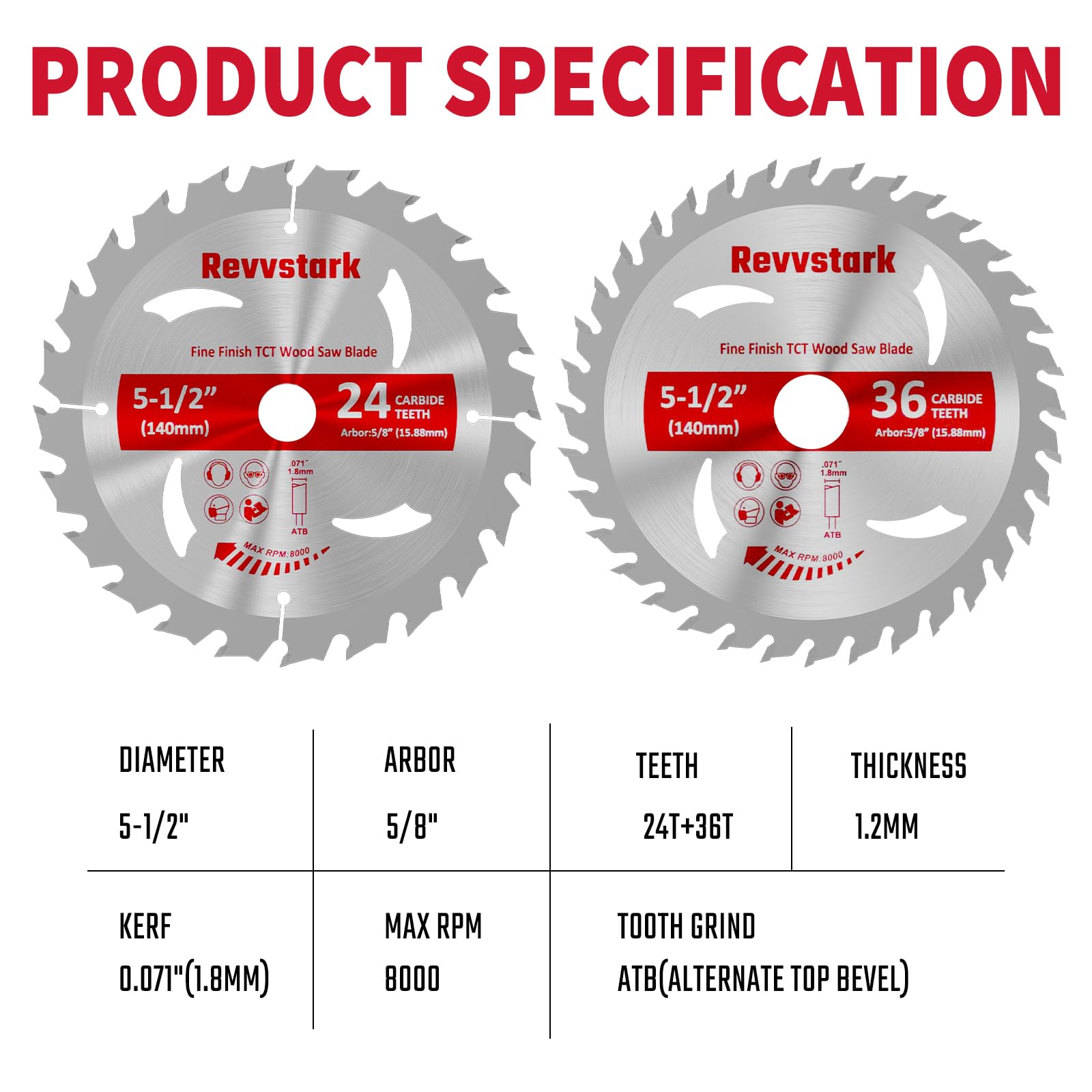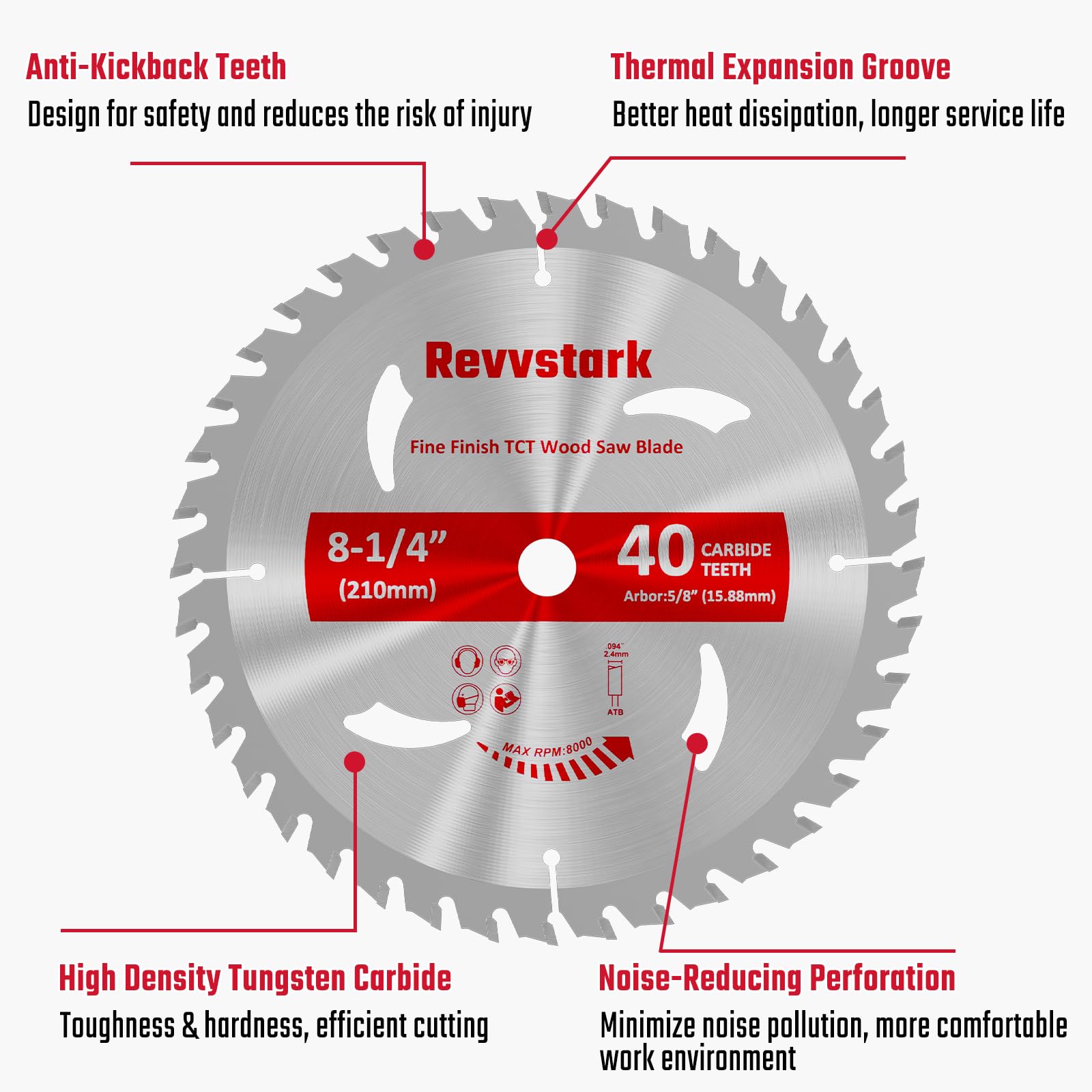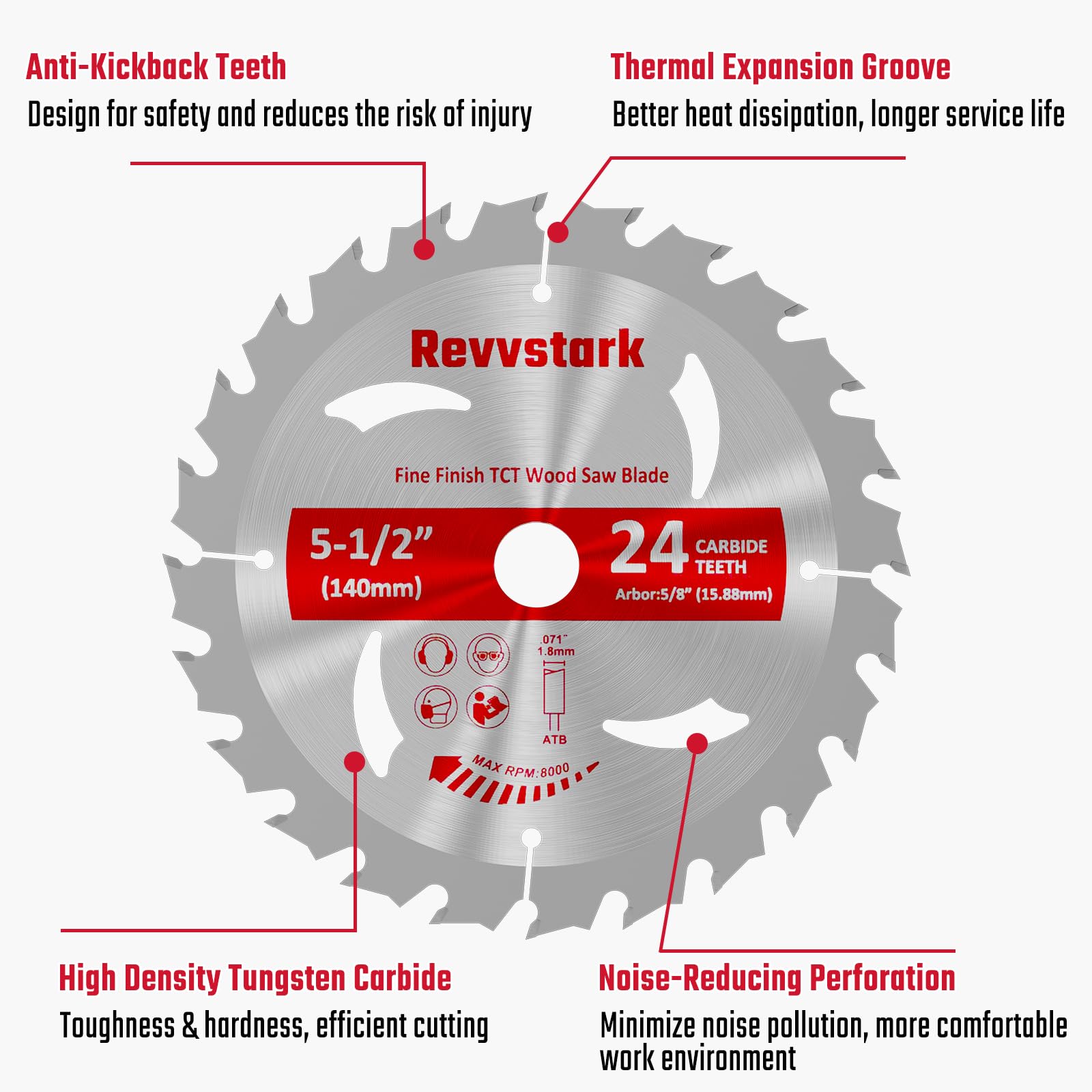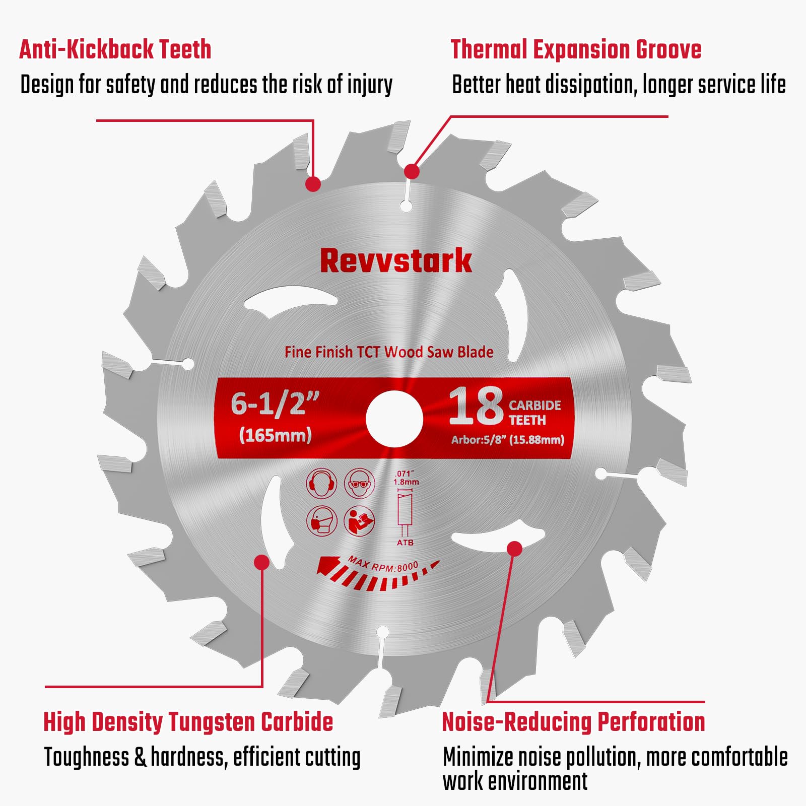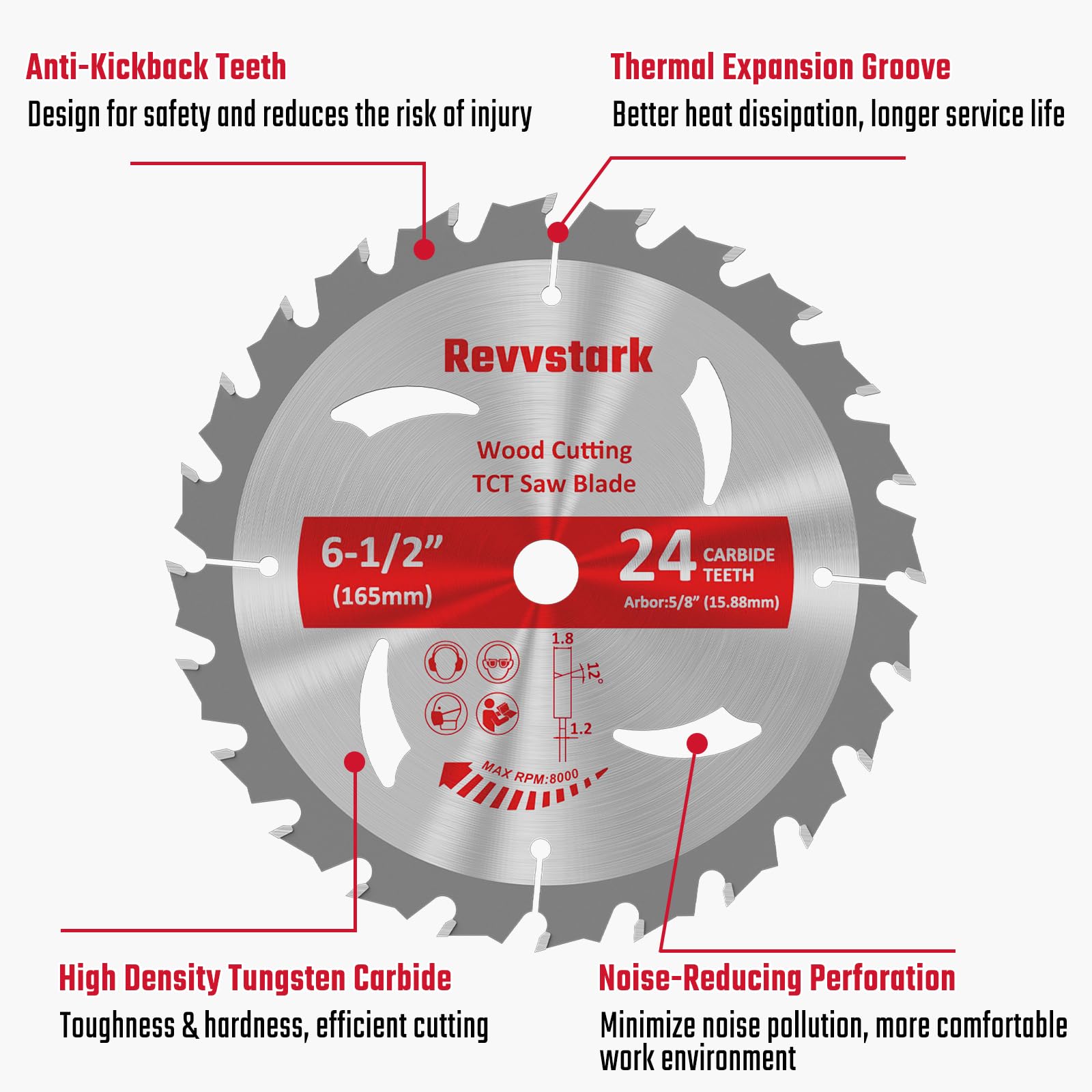 - DURABLE MATERIAL: Revvstark 6 1/2 circular saw blade are made of durable premium alloy steel material, with hardened and sharper construction-grade tungsten carbide teeth for high abrasion and heat resistance and resists bending and deflection for true cuts for effective wood cutting